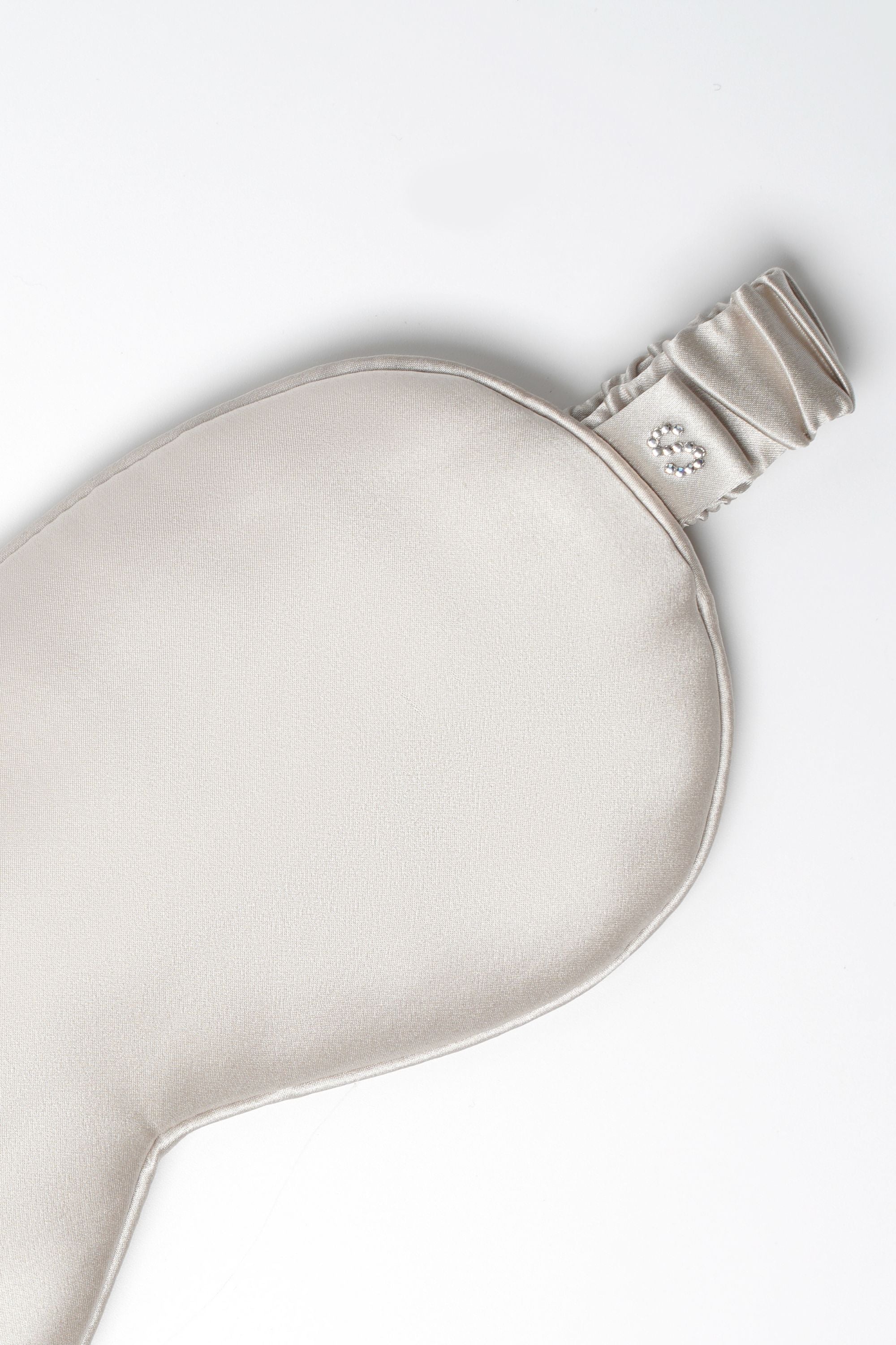 Introducing the Galaxy Grey Silk Eye Mask. Crafted with supple mulberry silk, graced with S-shaped Swarovski crystals for pure comfort and style.