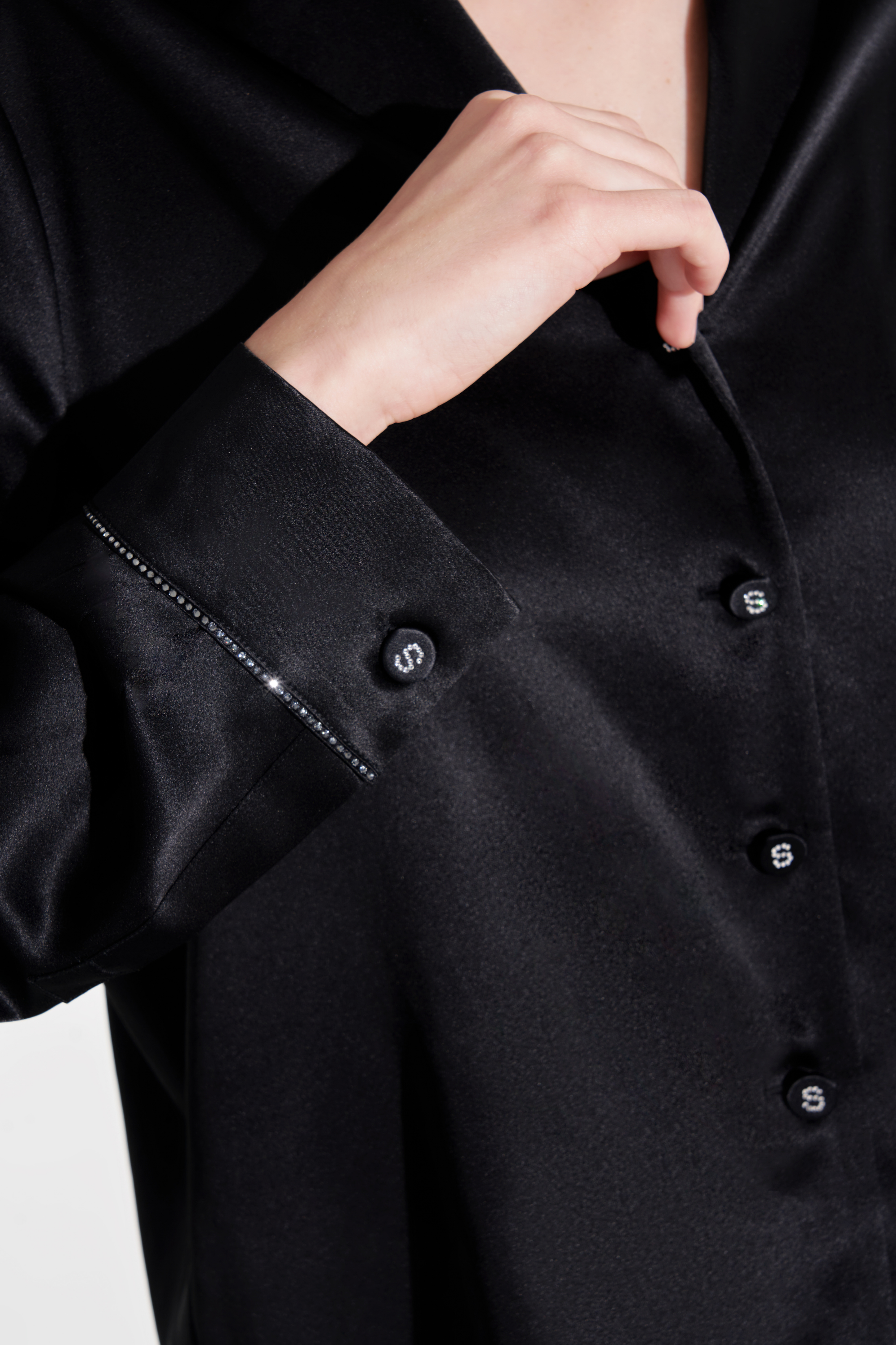 Exuding summer chic and comfort, this classic pyjama top features a loose silhouette that adds an element of relaxation to your attire. The exquisite crystal button detailing adds a touch of elegance. For an added pop of color, this top is also available in a vibrant lime green option.