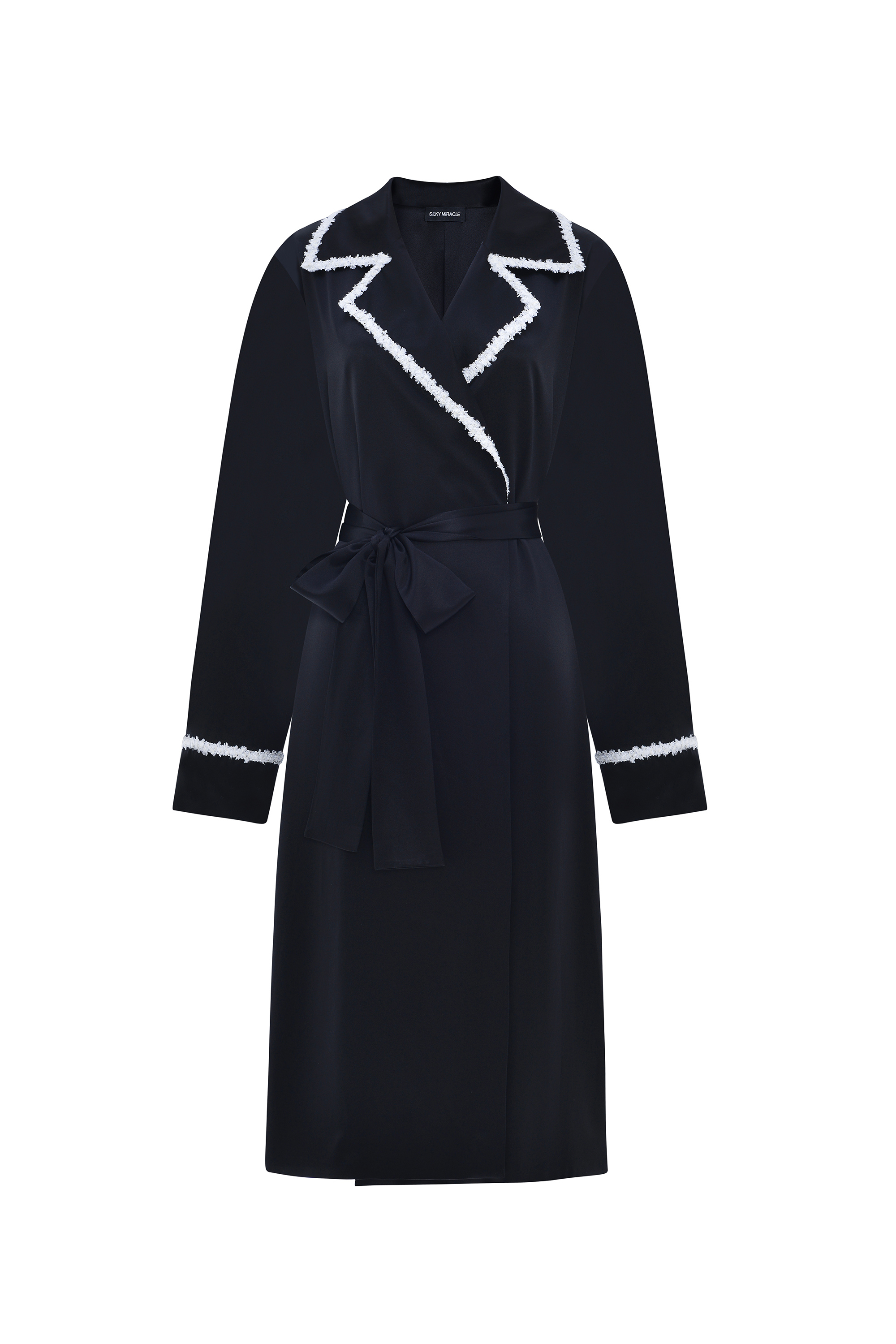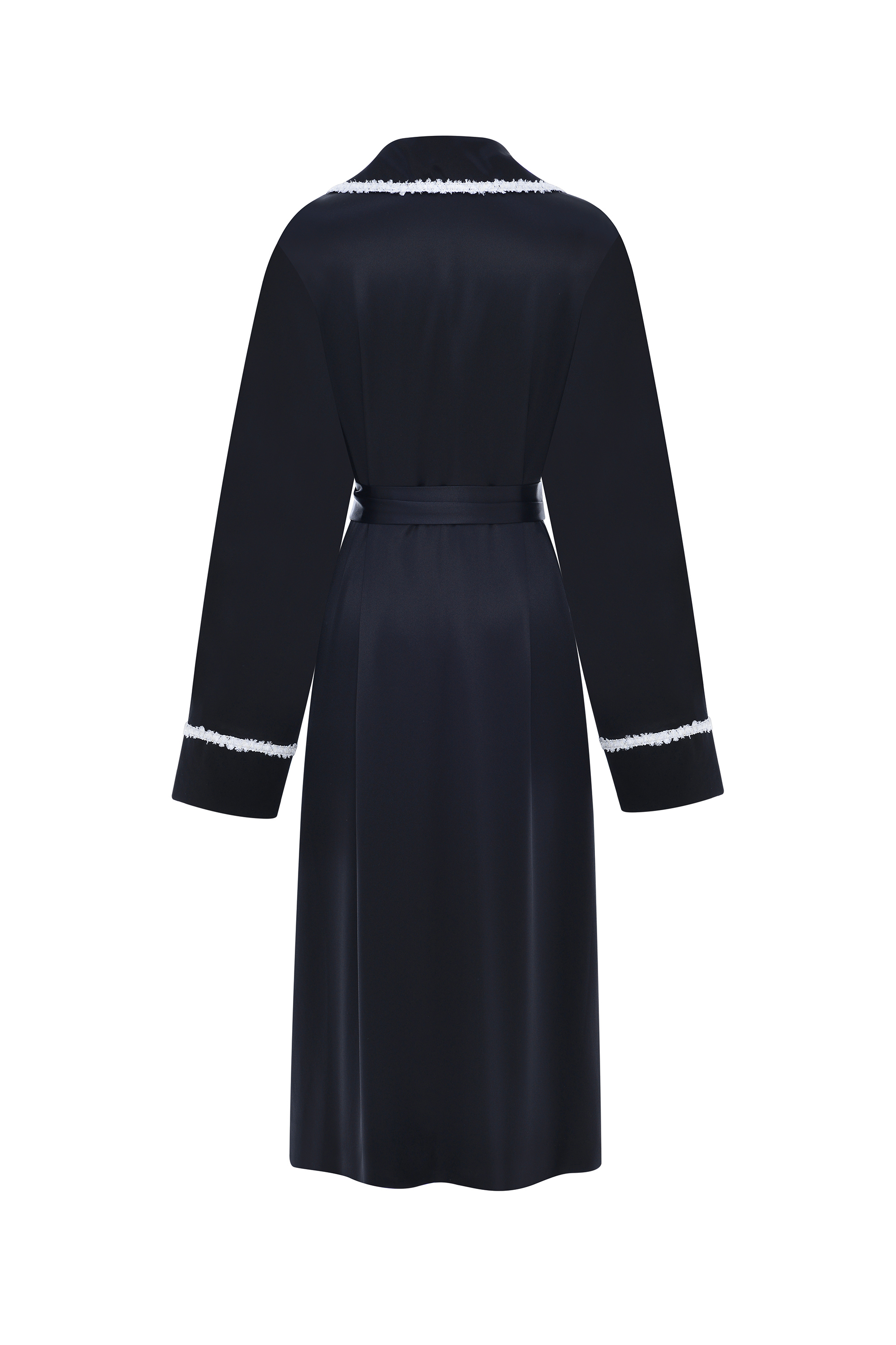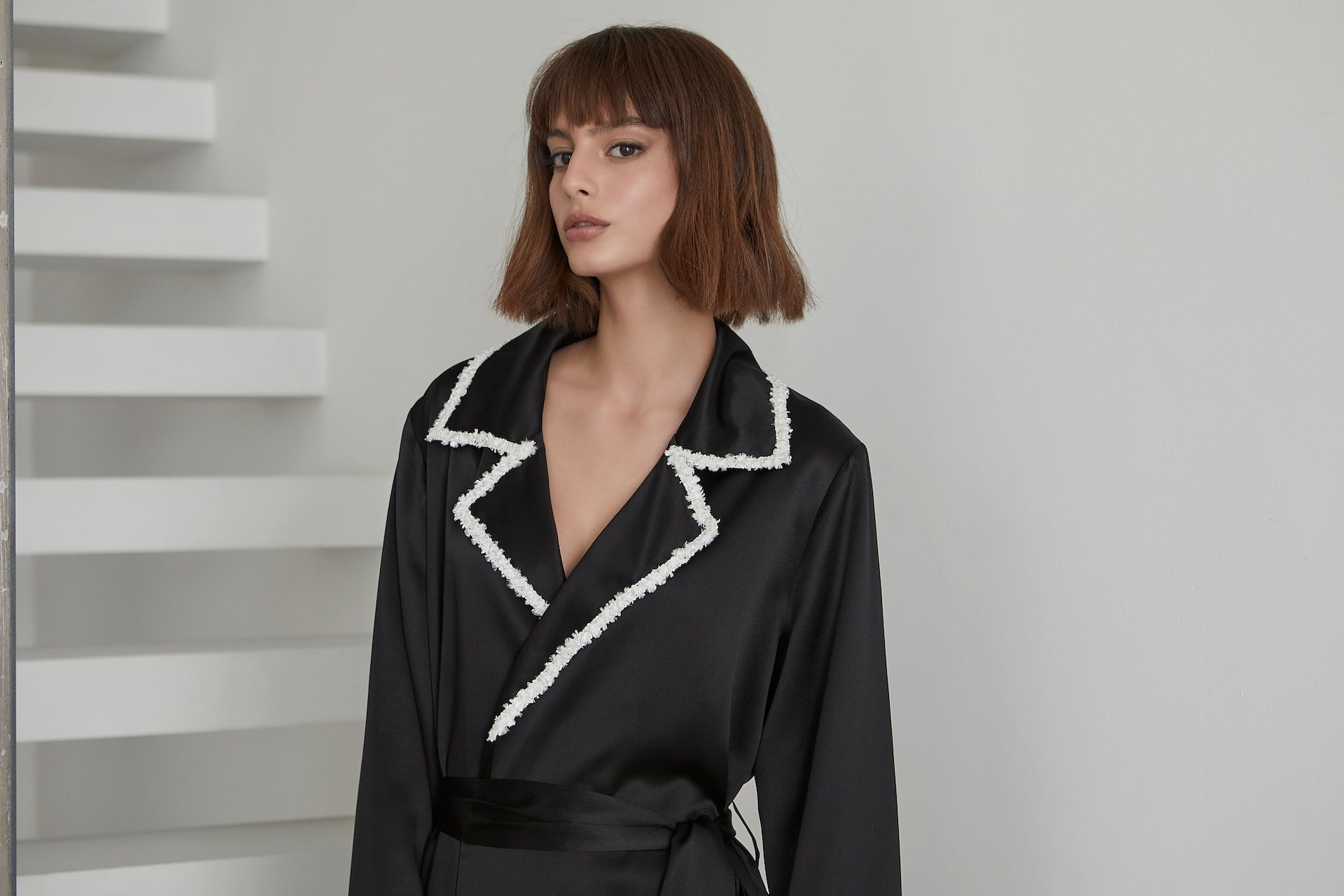 The Black Tweed Detail Ribbon-tie Silk Robe is cut from an unbeatably polished silk, treasured with delicate tweed piping and tie waist detail.