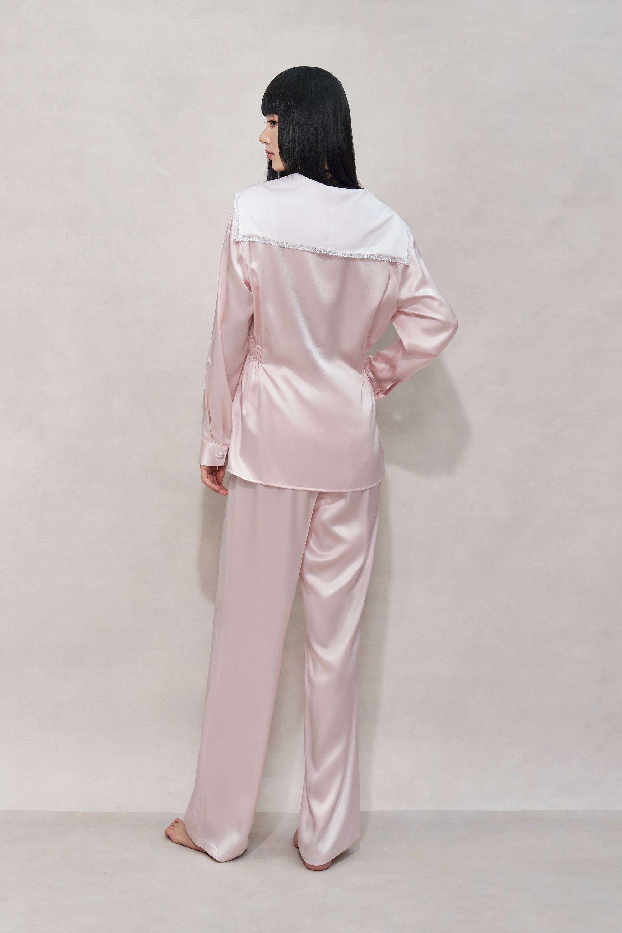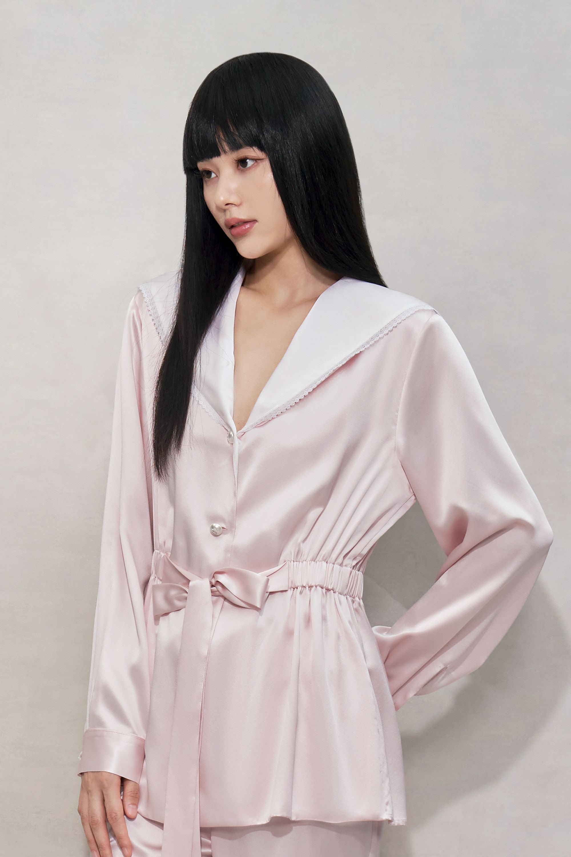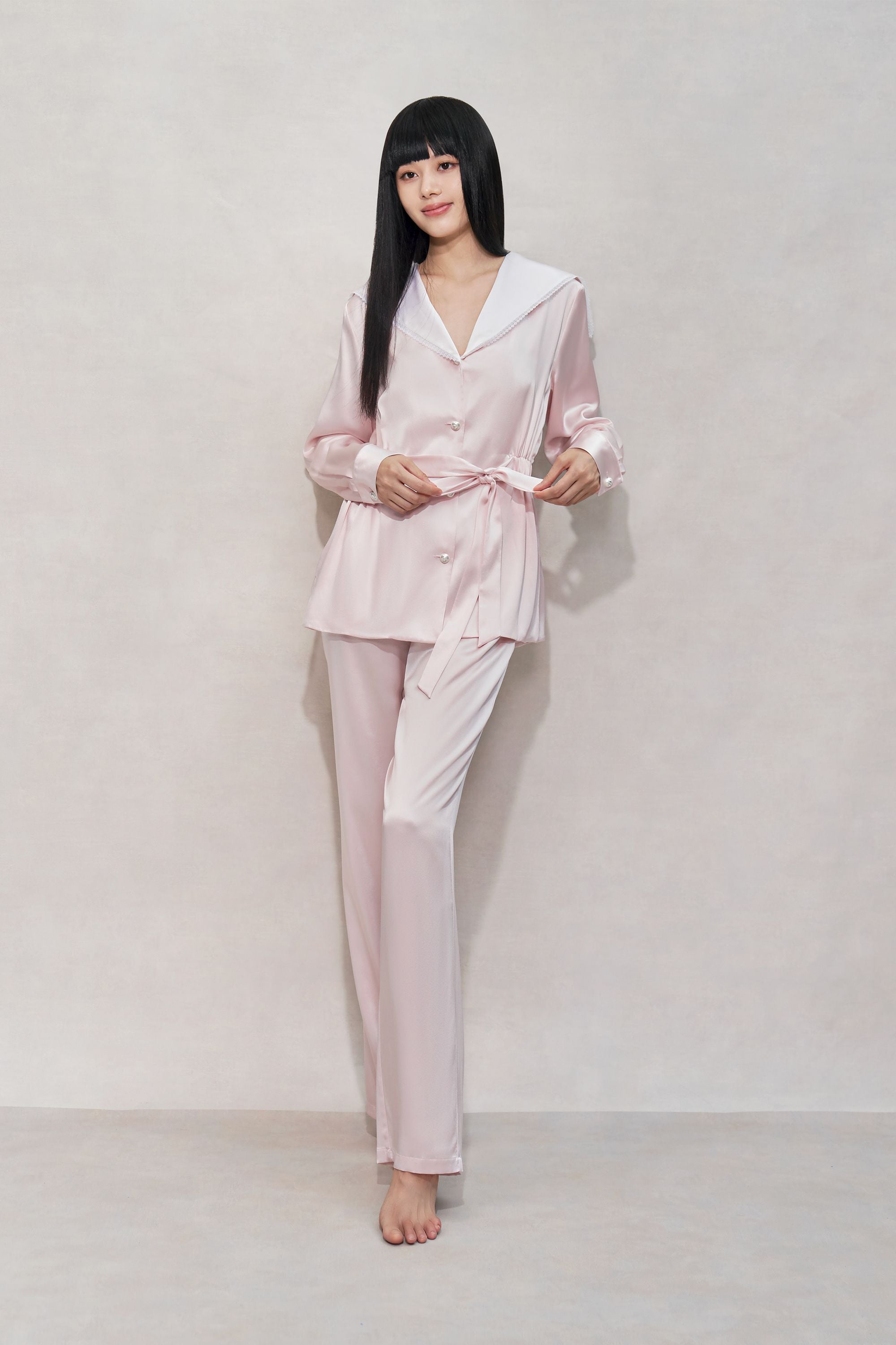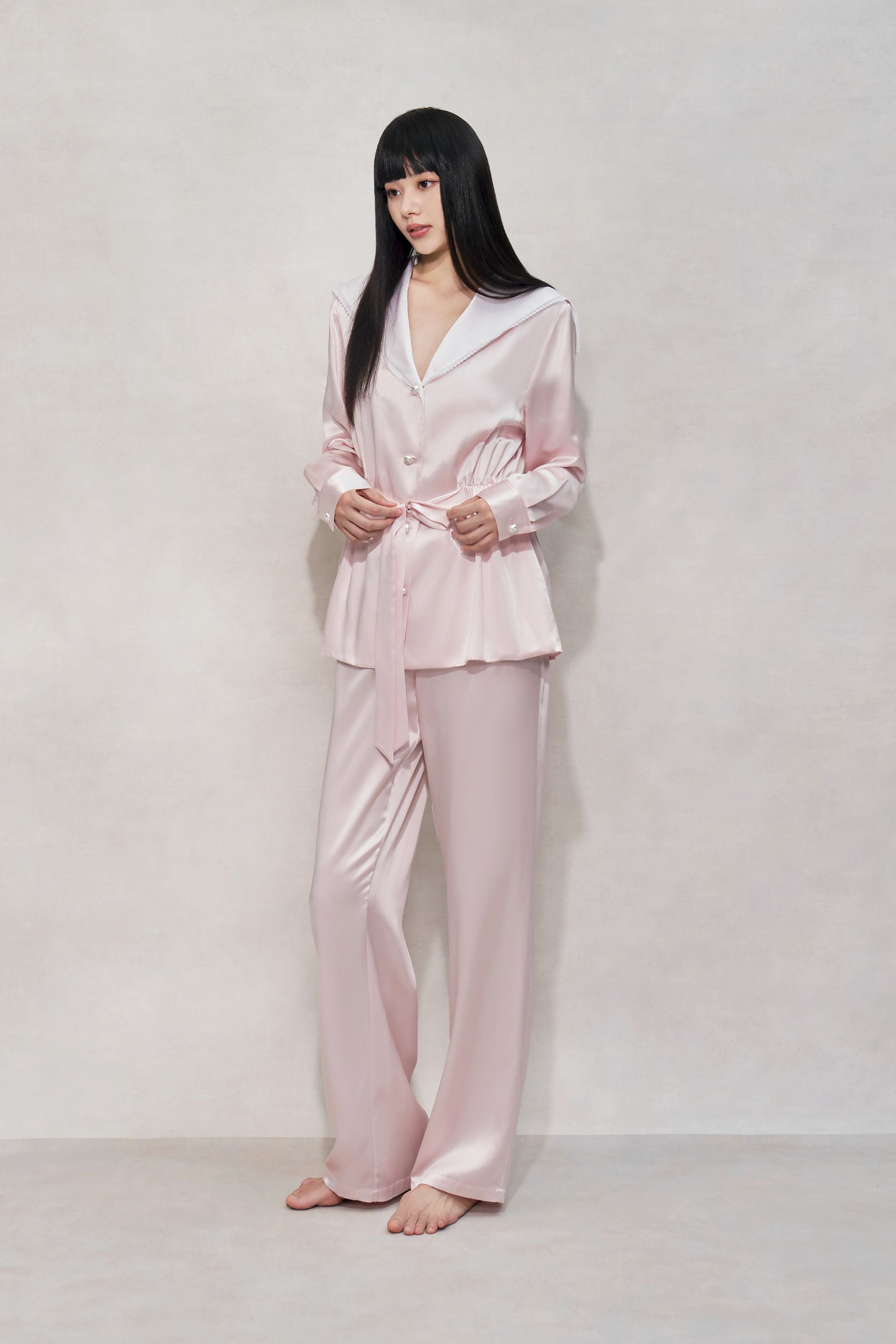 Cherry Blossom Pink Tie Silk Pyjamas Set