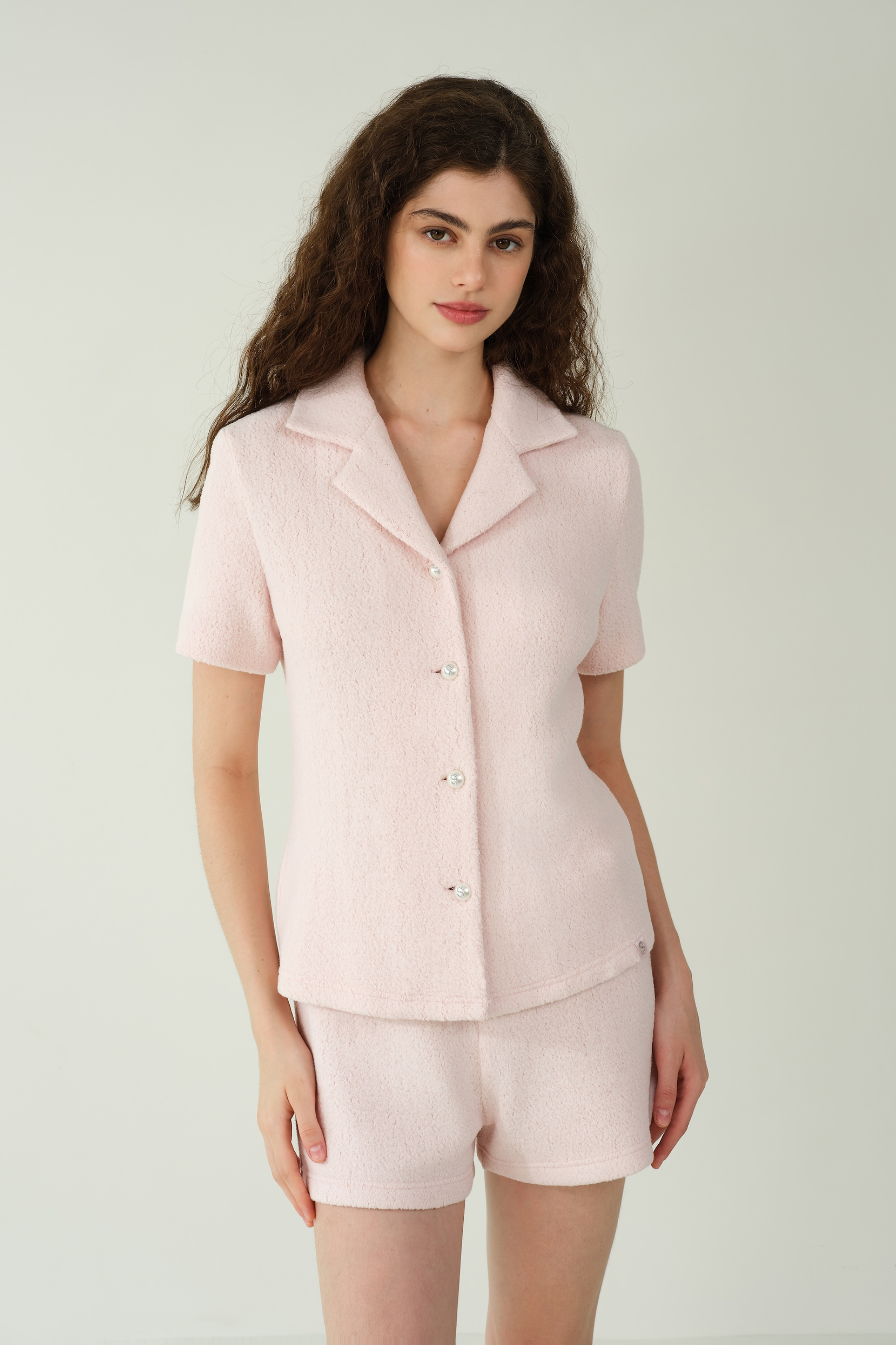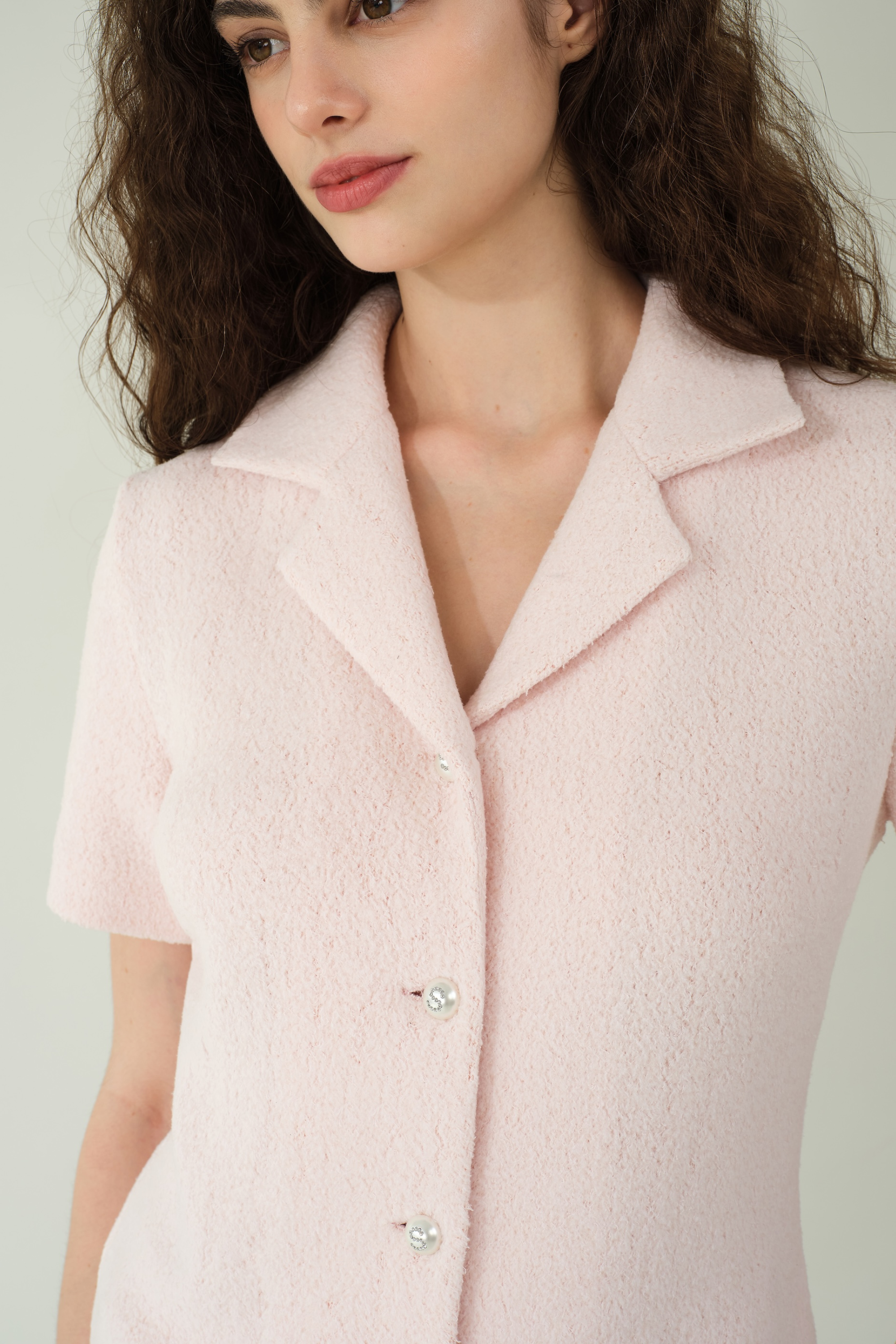 Featuring a slim fit and delicate lapel for a vintage touch, this design is elevated with silk-lined cuffs and a placket adorned with classic pearl and S-diamond buttons, while the bottom hem is embellished with sparkling S-diamonds for a refined finish.