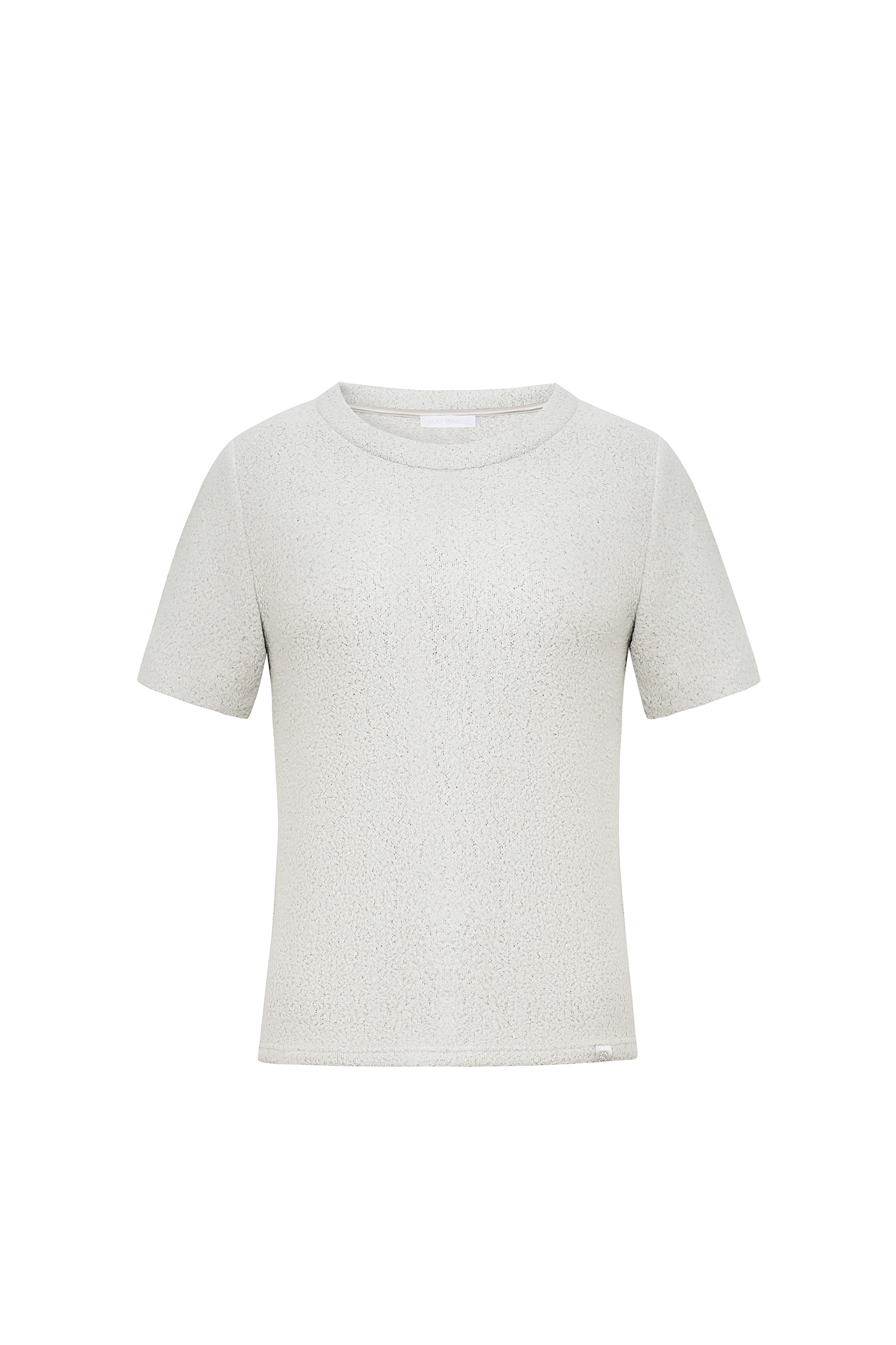 The slim-fit, short-sleeve silhouette offers a simple and clean look, with perfectly cut sleeves. While the bottom hem is adorned with an S-diamond label for an elegant touch