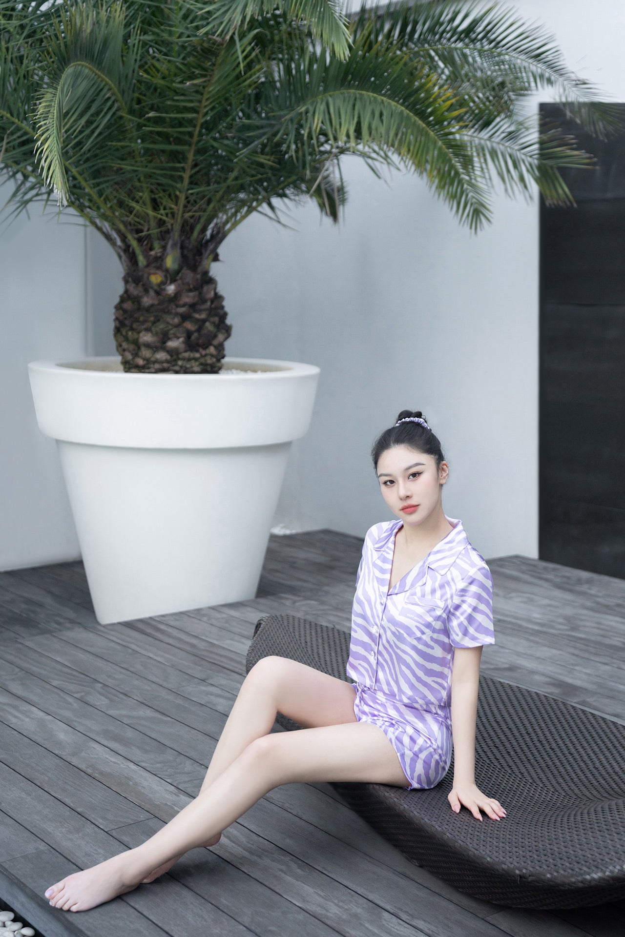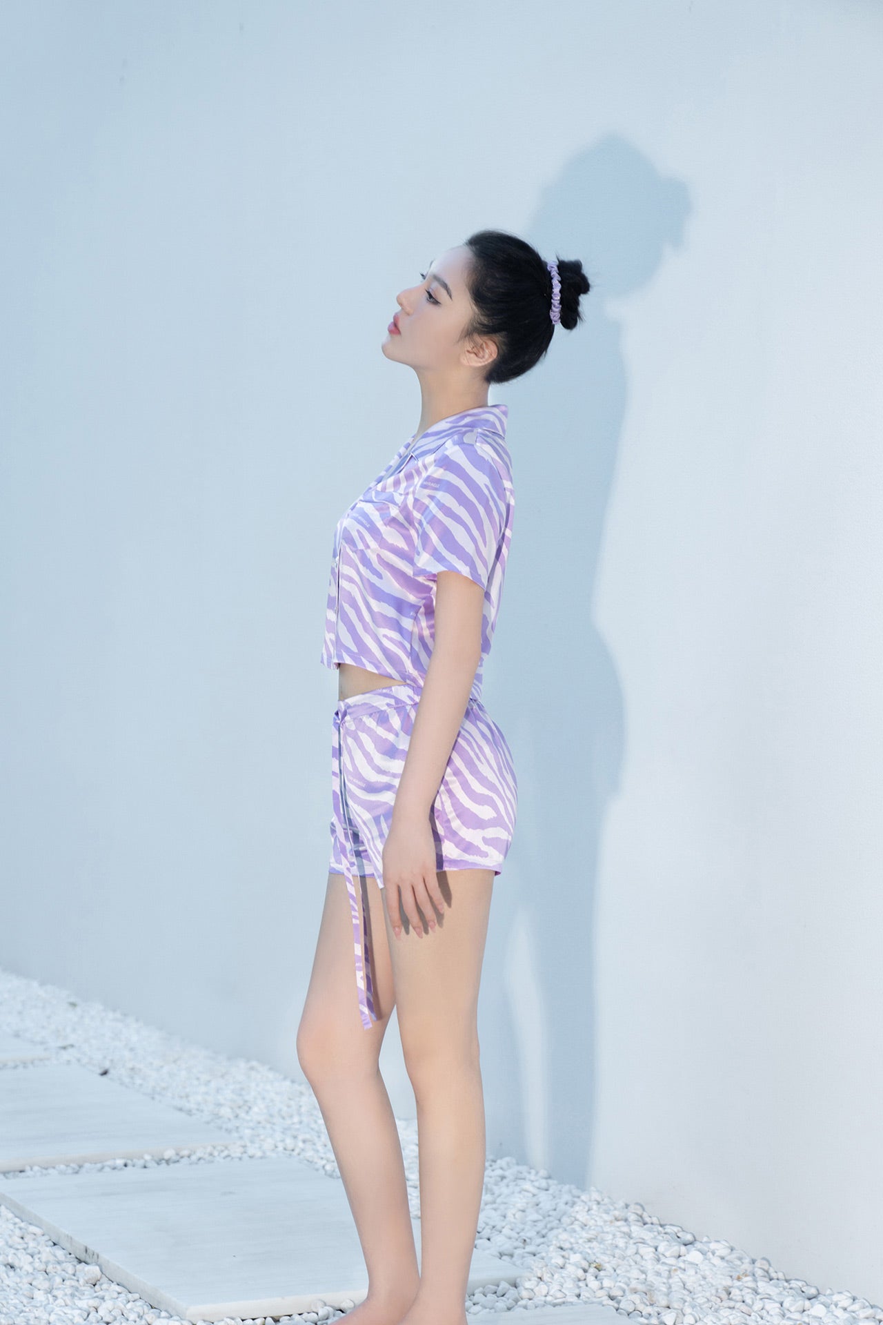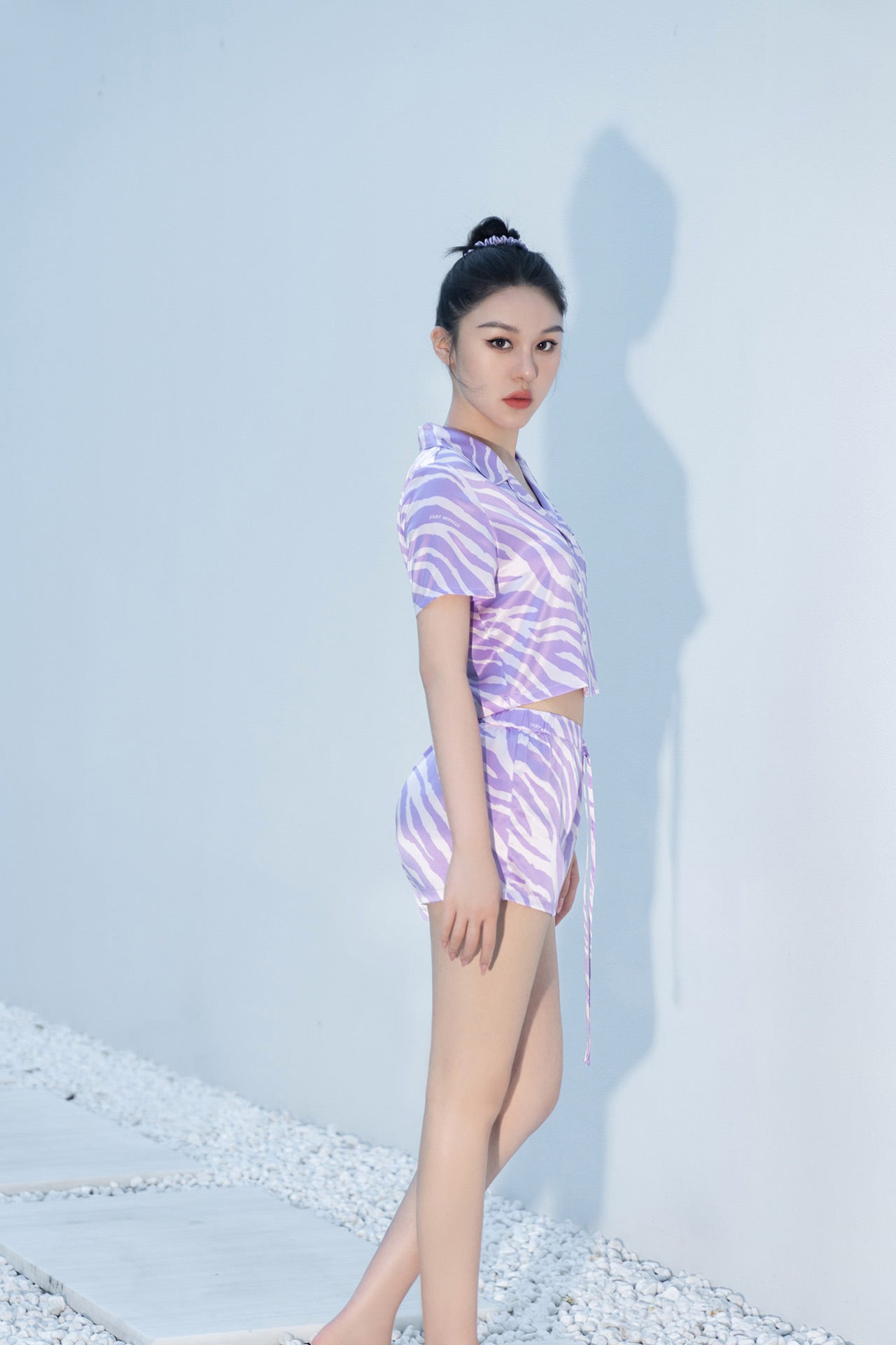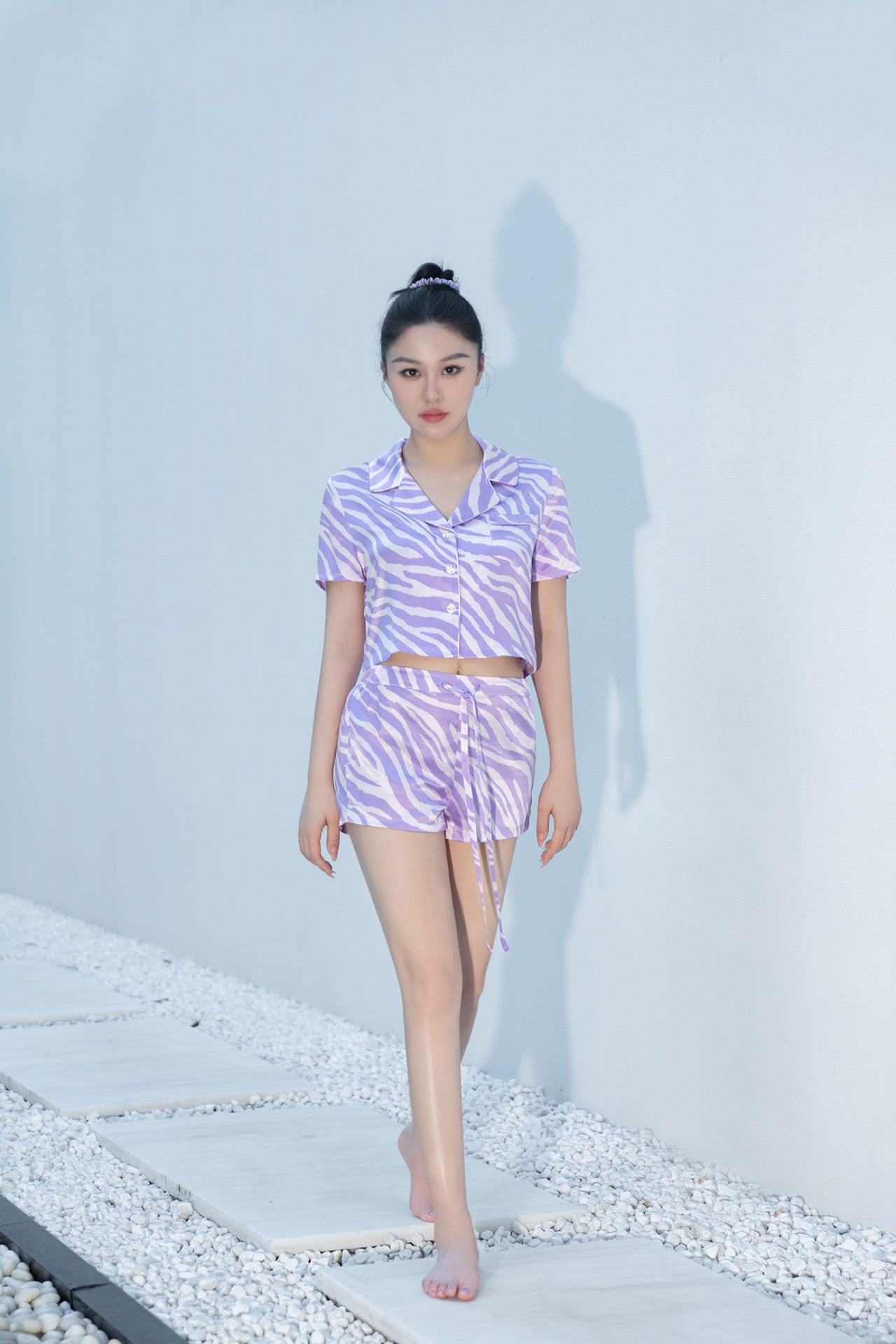 Zebra Print Crystal Purple Short-Sleeved Pyjama Set