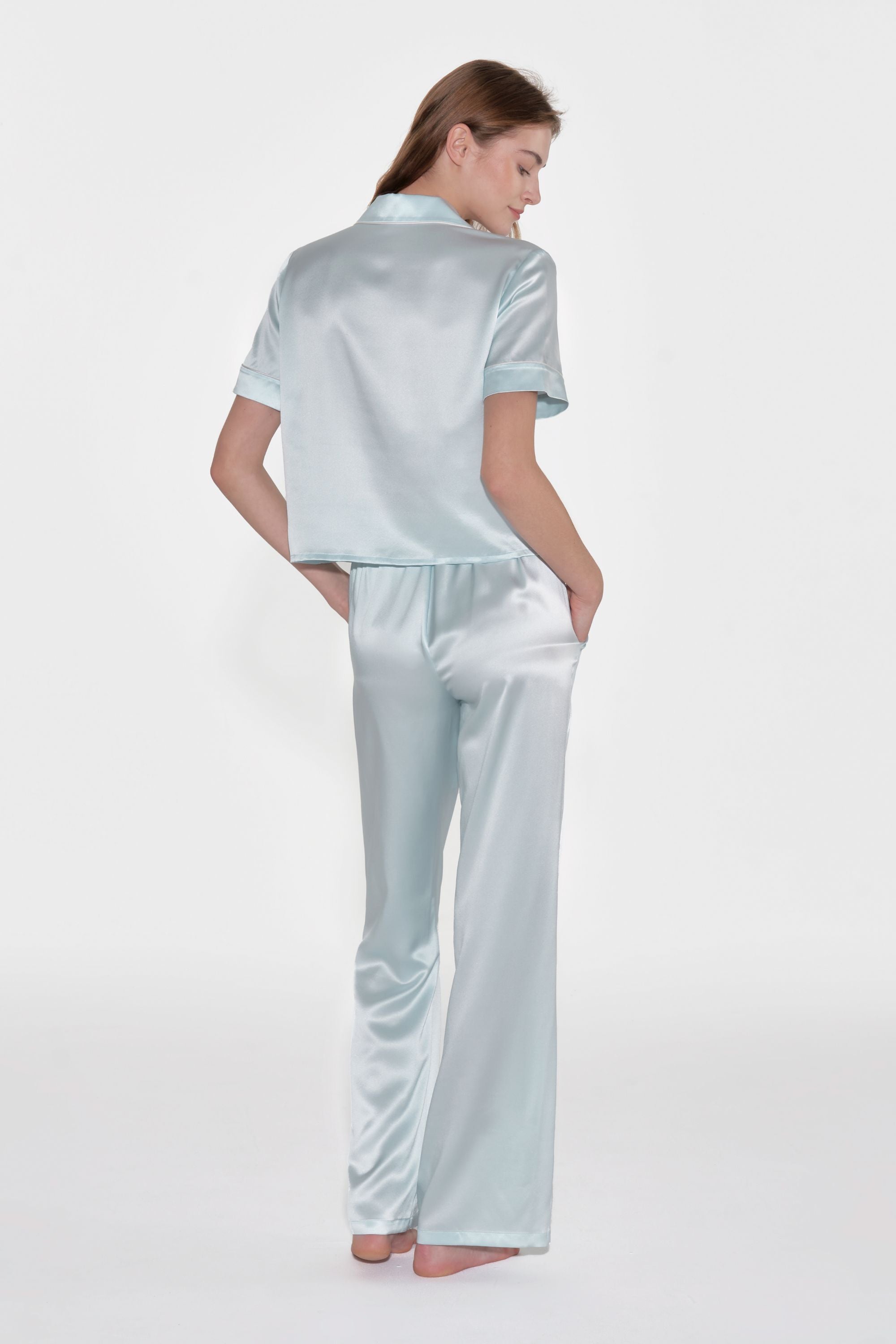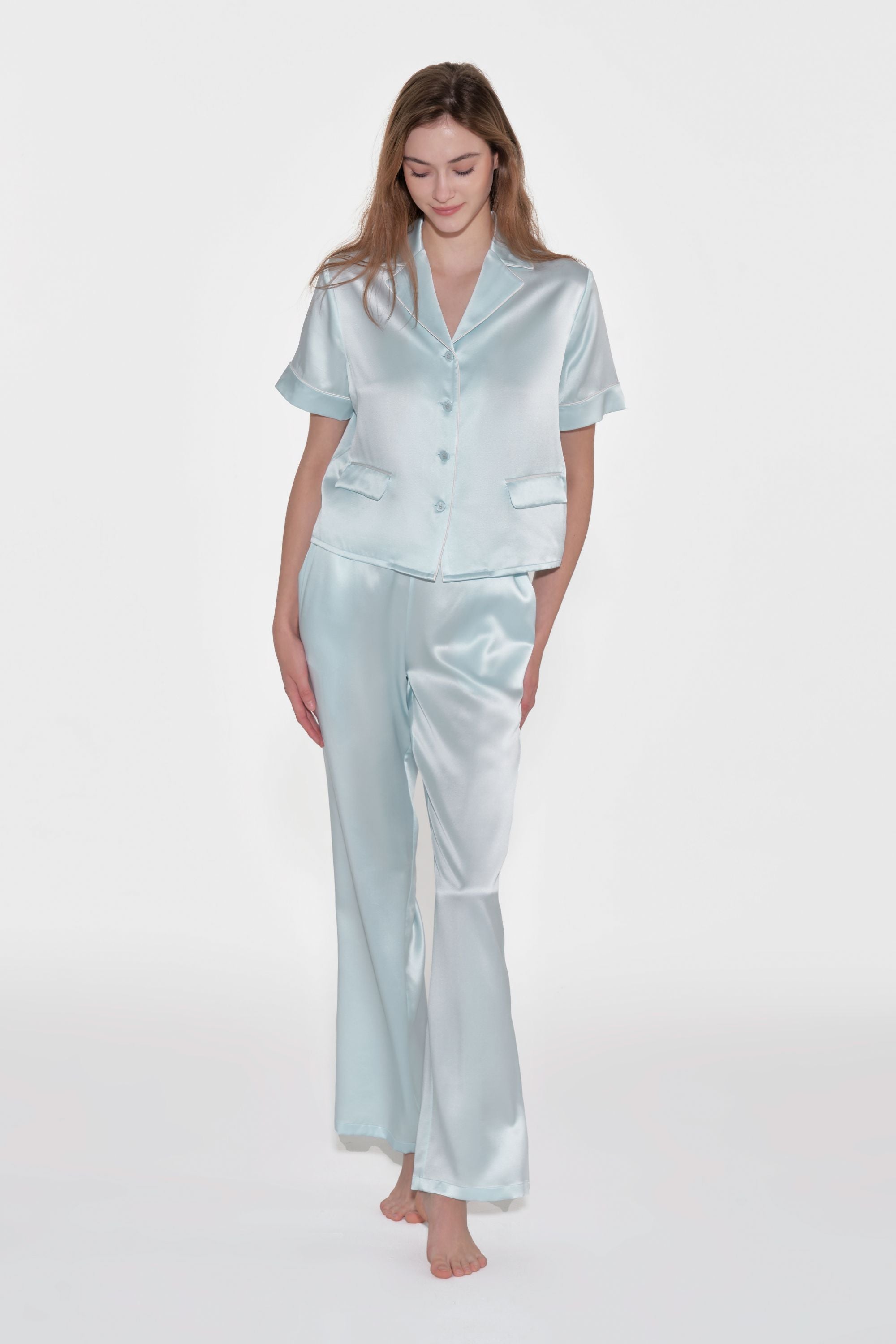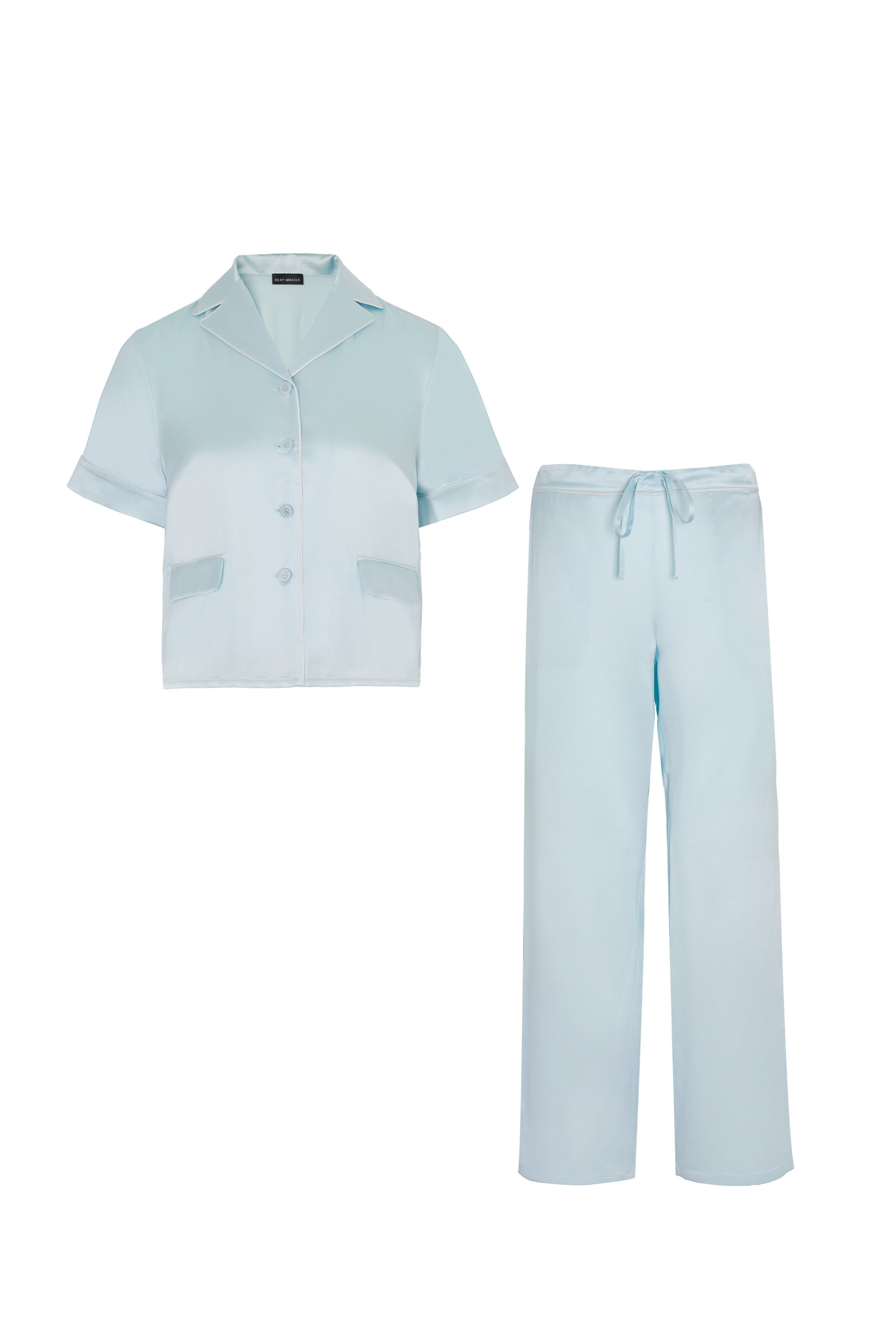 Sky Blue Short Sleeved Silk Pyjama Set