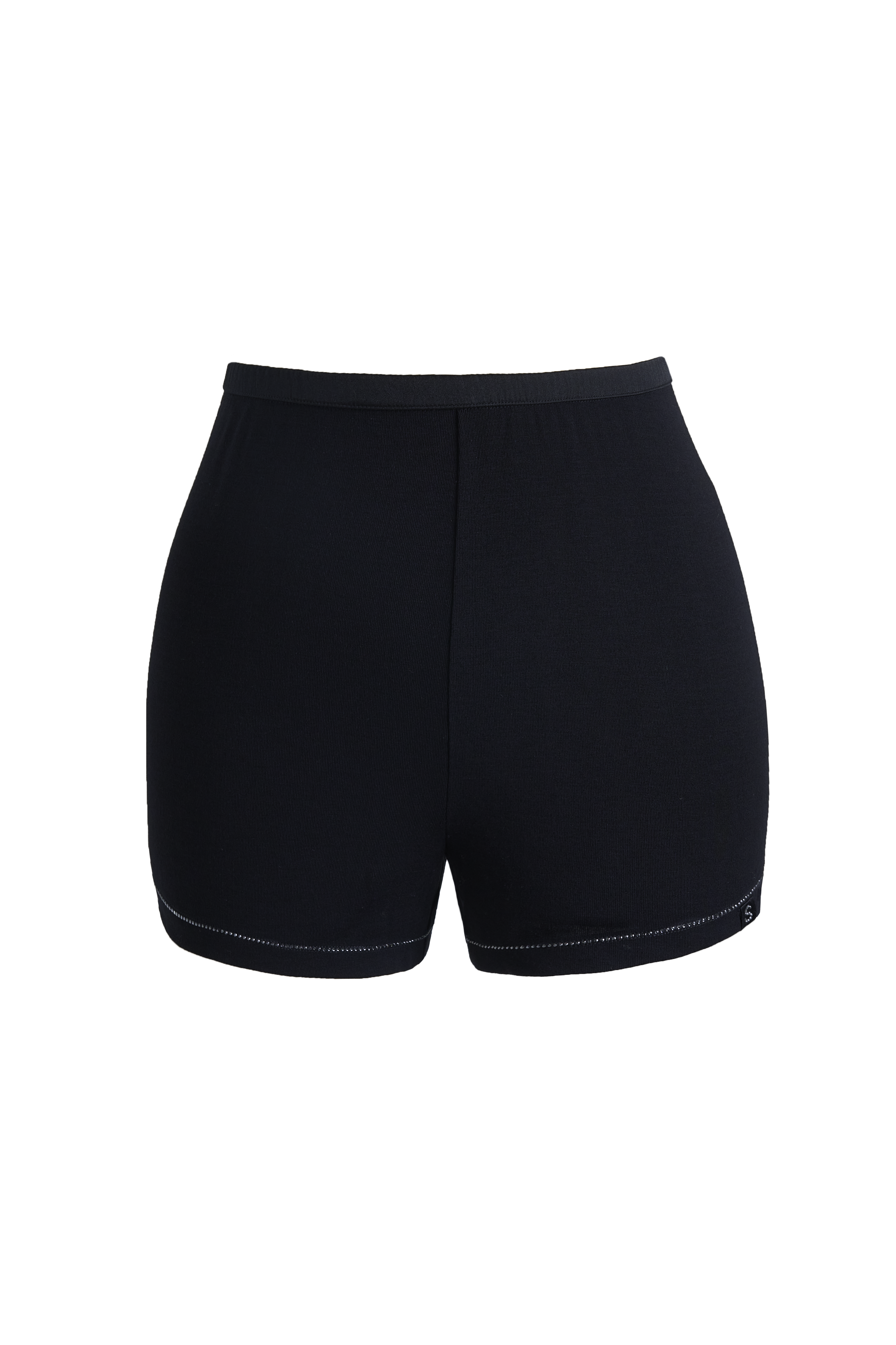 The Swarovski Black Shorts from our silk blend collection is crafted from a blend of mulberry silk, modal and spandex. Finished with Swarovski Crystals.