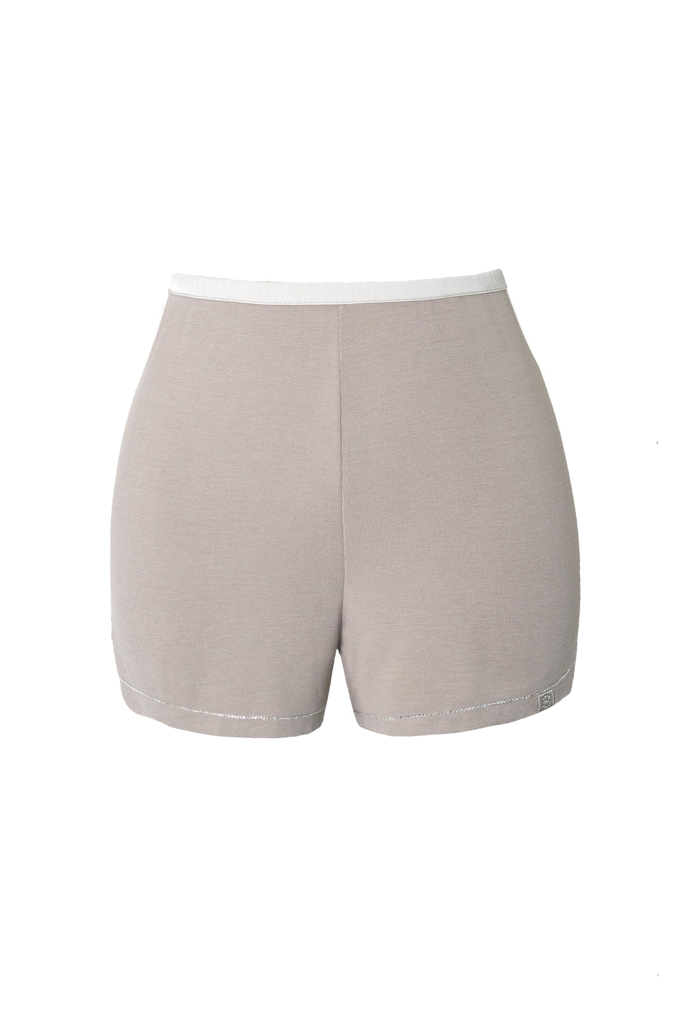 The Swarovski Grey Shorts from our silk blend collection is crafted from a blend of mulberry silk, modal and spandex. Finished with Swarovski Crystals.
