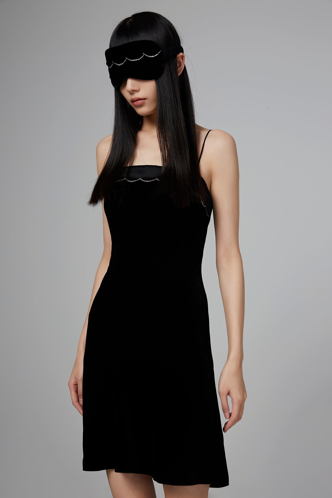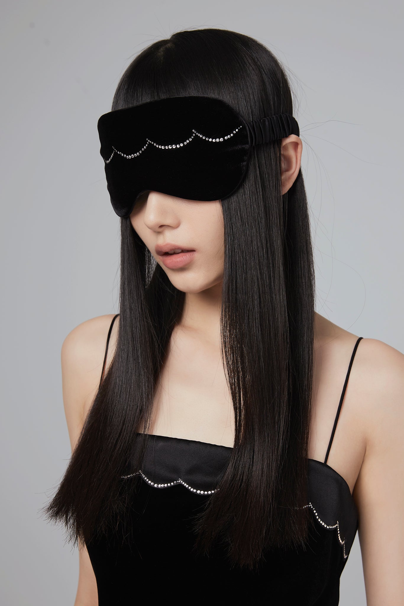 The Waves Collection Velvet Crystal Eye Mask is cut from a high shine velvet and studded with Swarovski crystal wave patterns, with a smooth elastic allowing for a beautifully comfortable experience.