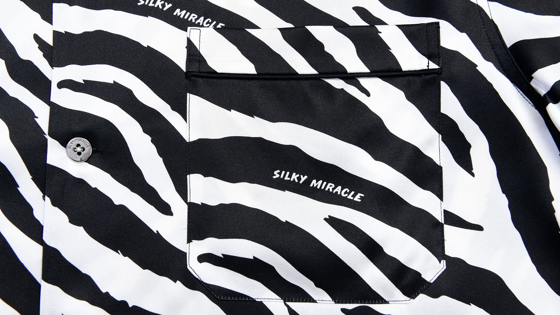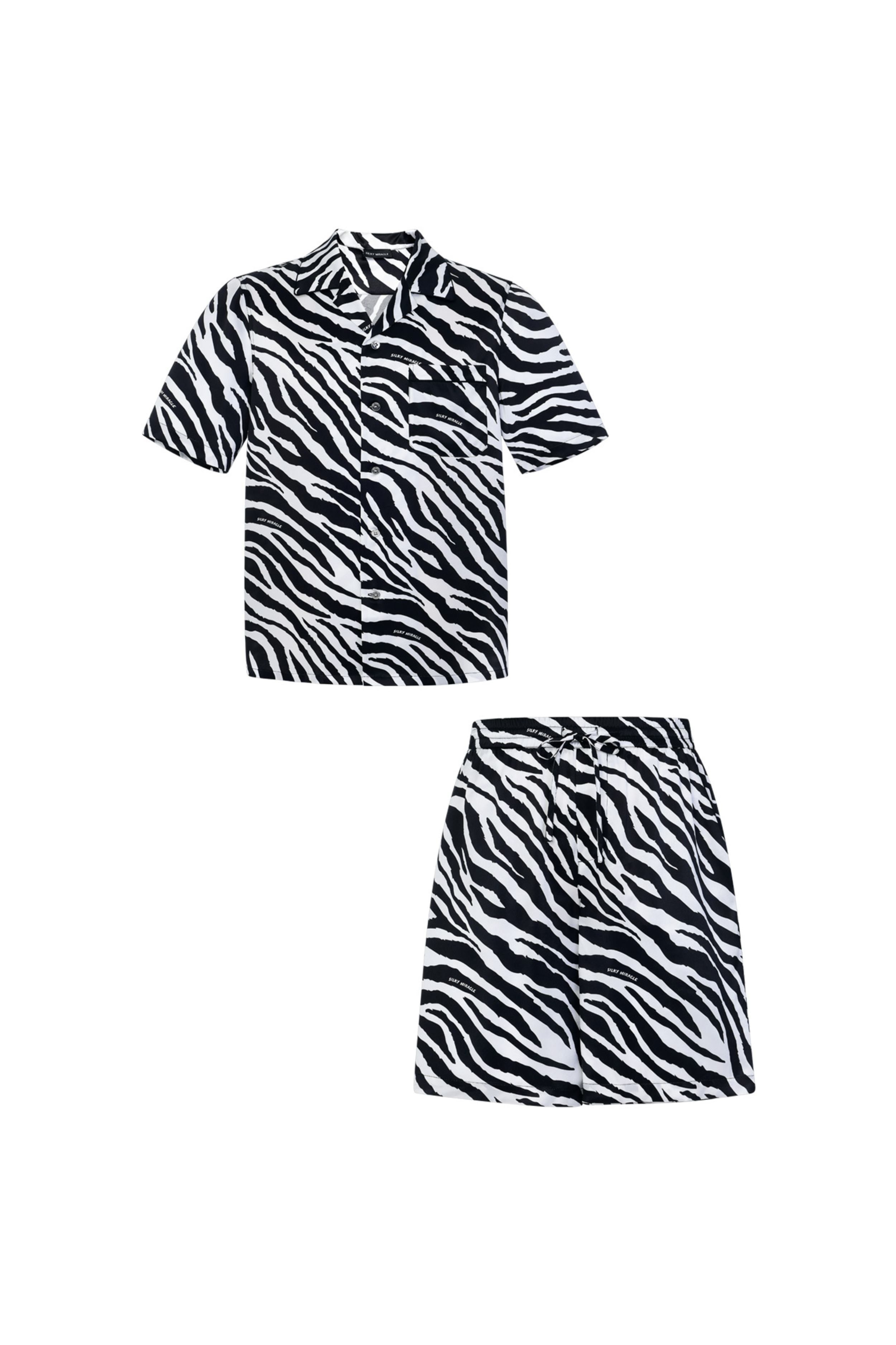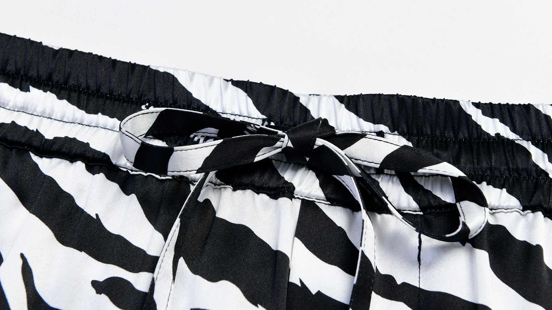 The Zebra Print Black Short Silk Pyjama Set comes with a short sleeve shirt and shorts with a drawstring design. Cut from an unbeatably glossy silk.