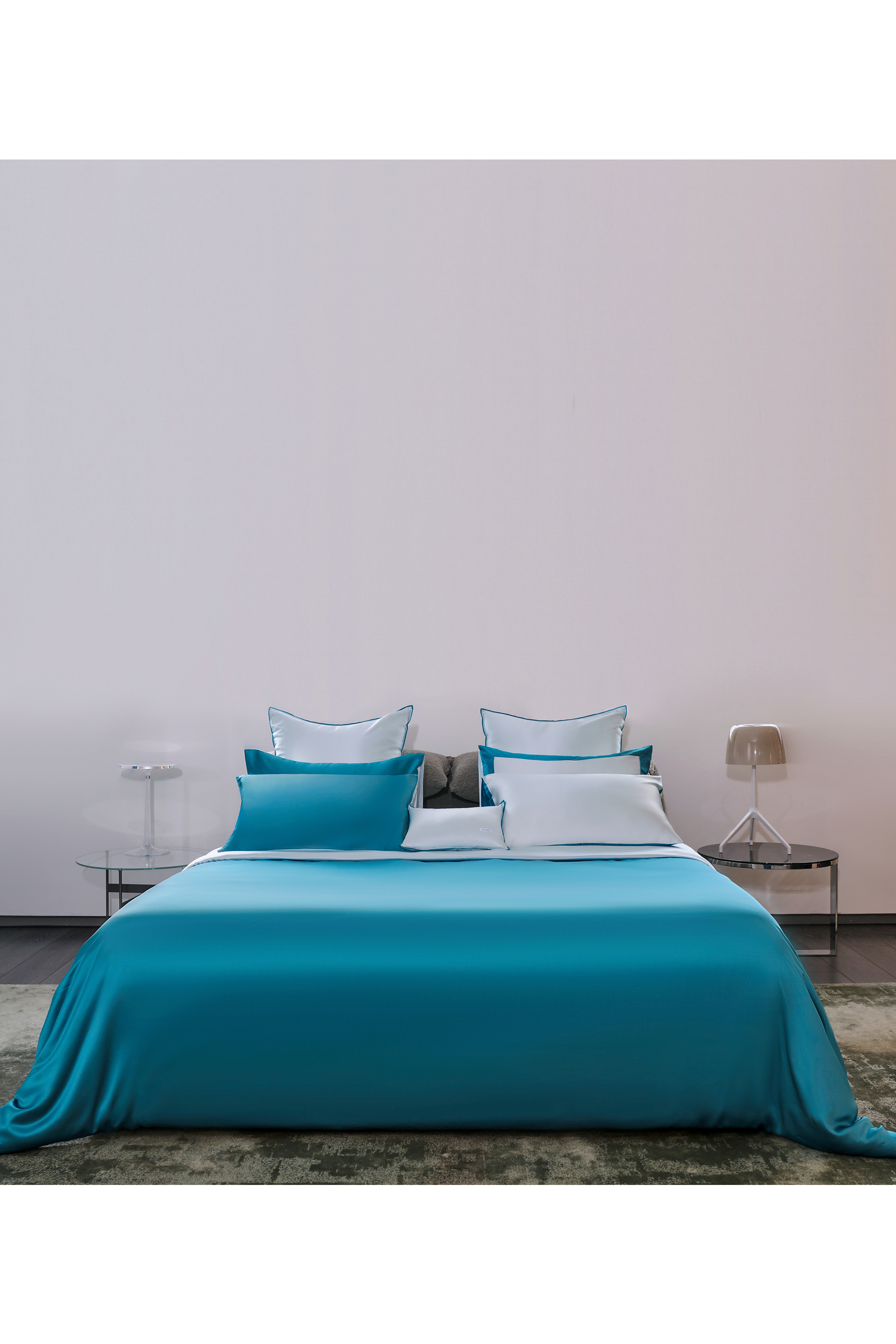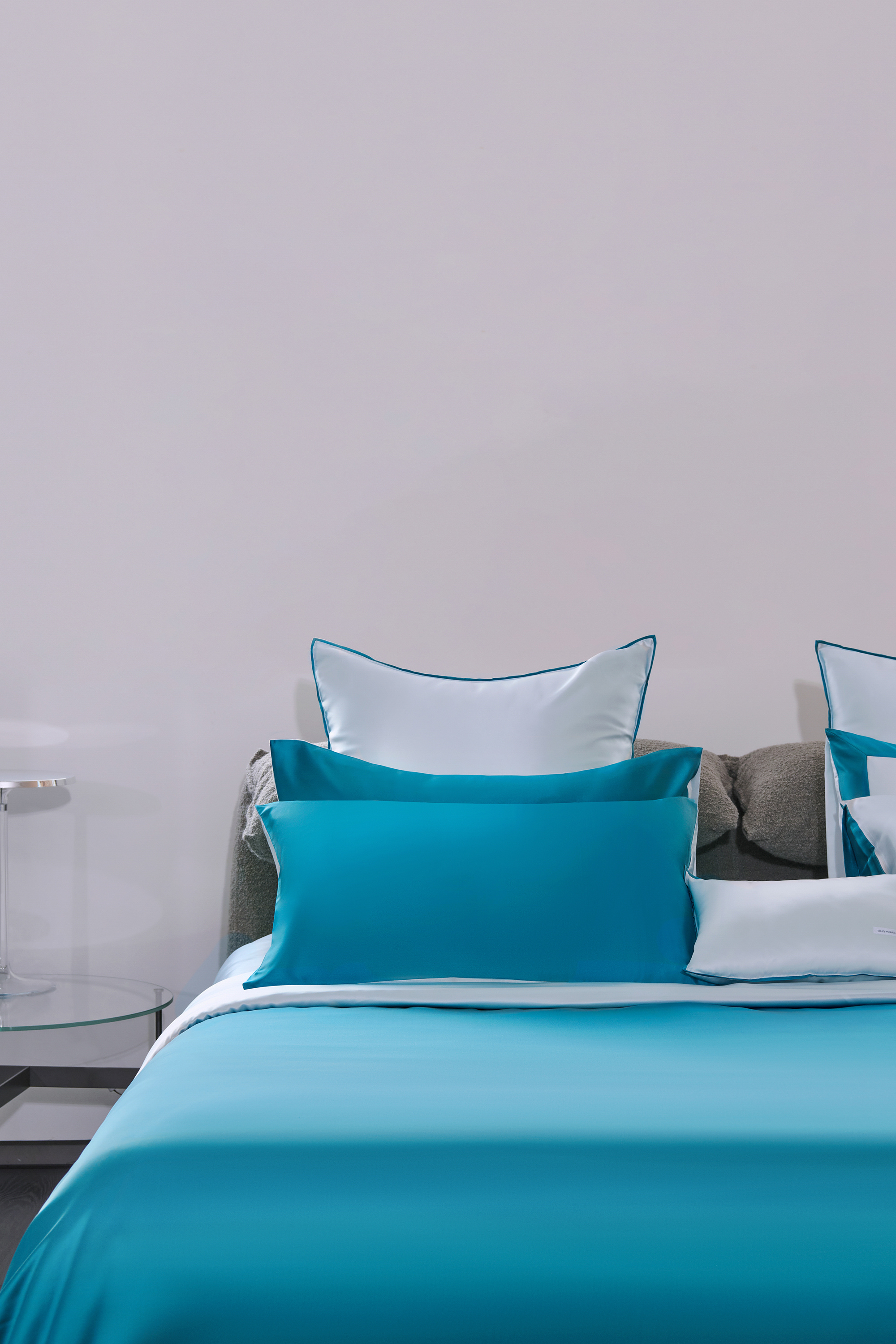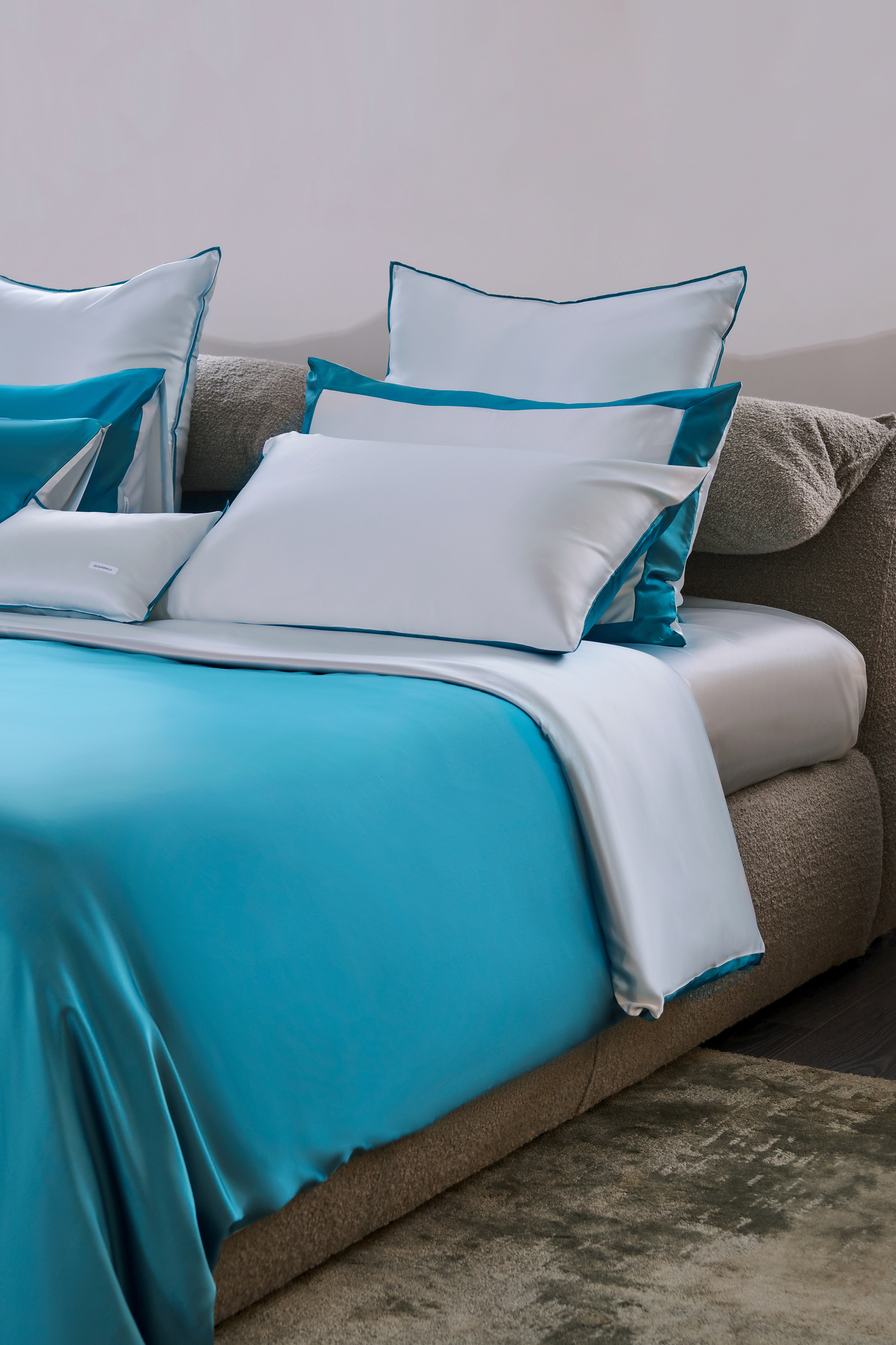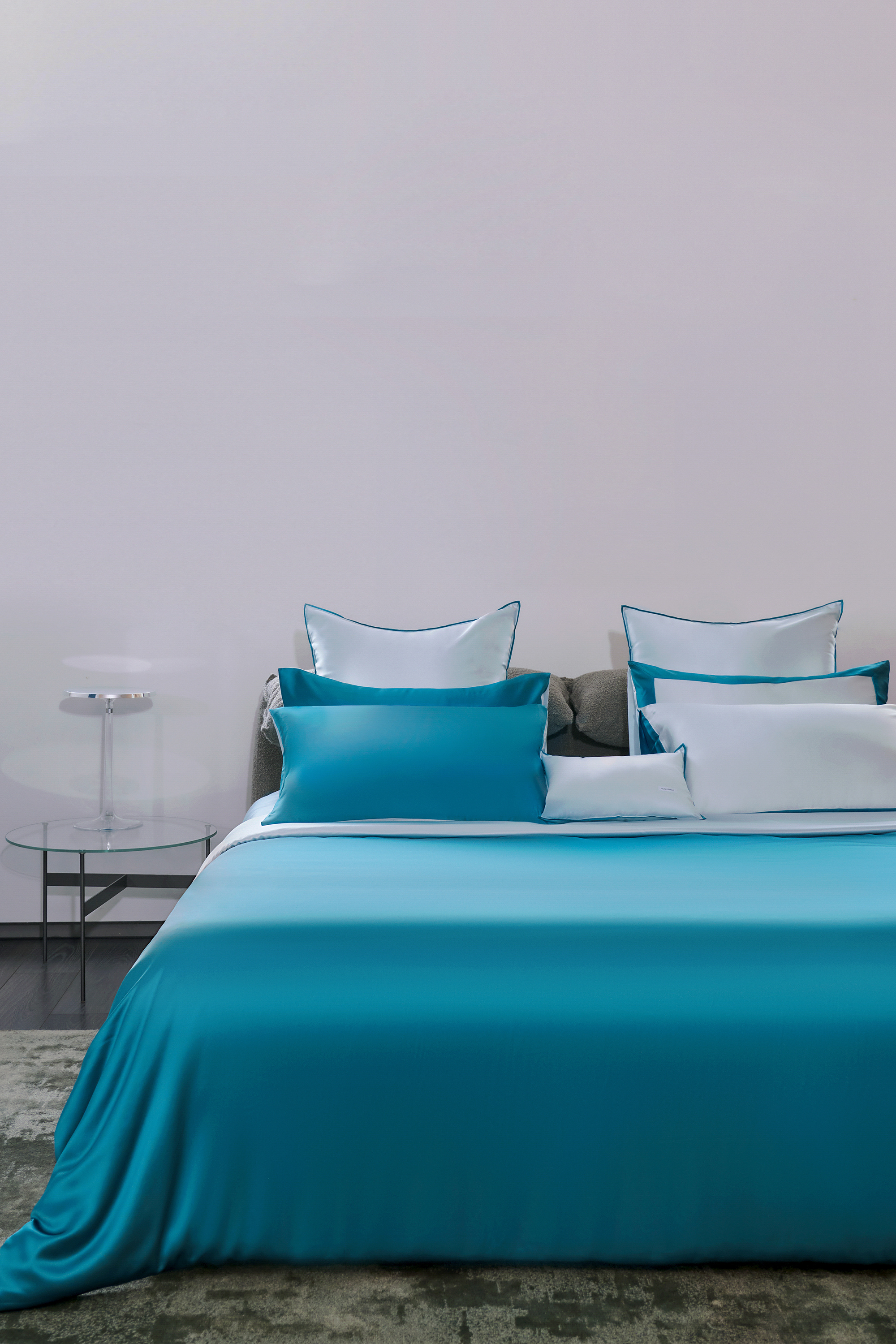 Elevate your nights sleep with the 100% silk bicolour bedding set. A classic, yet modern design featuring two pillow cases, a duvet cover and an under sheet.