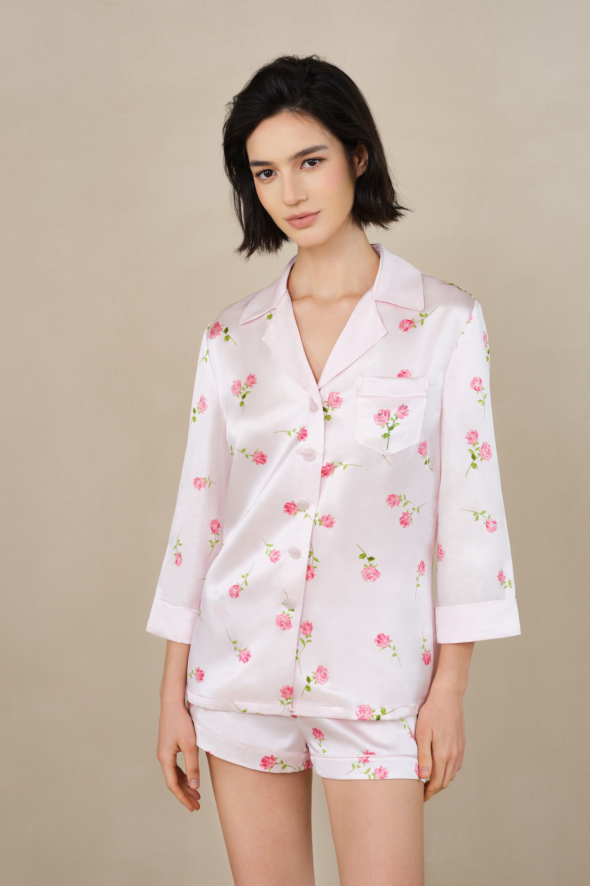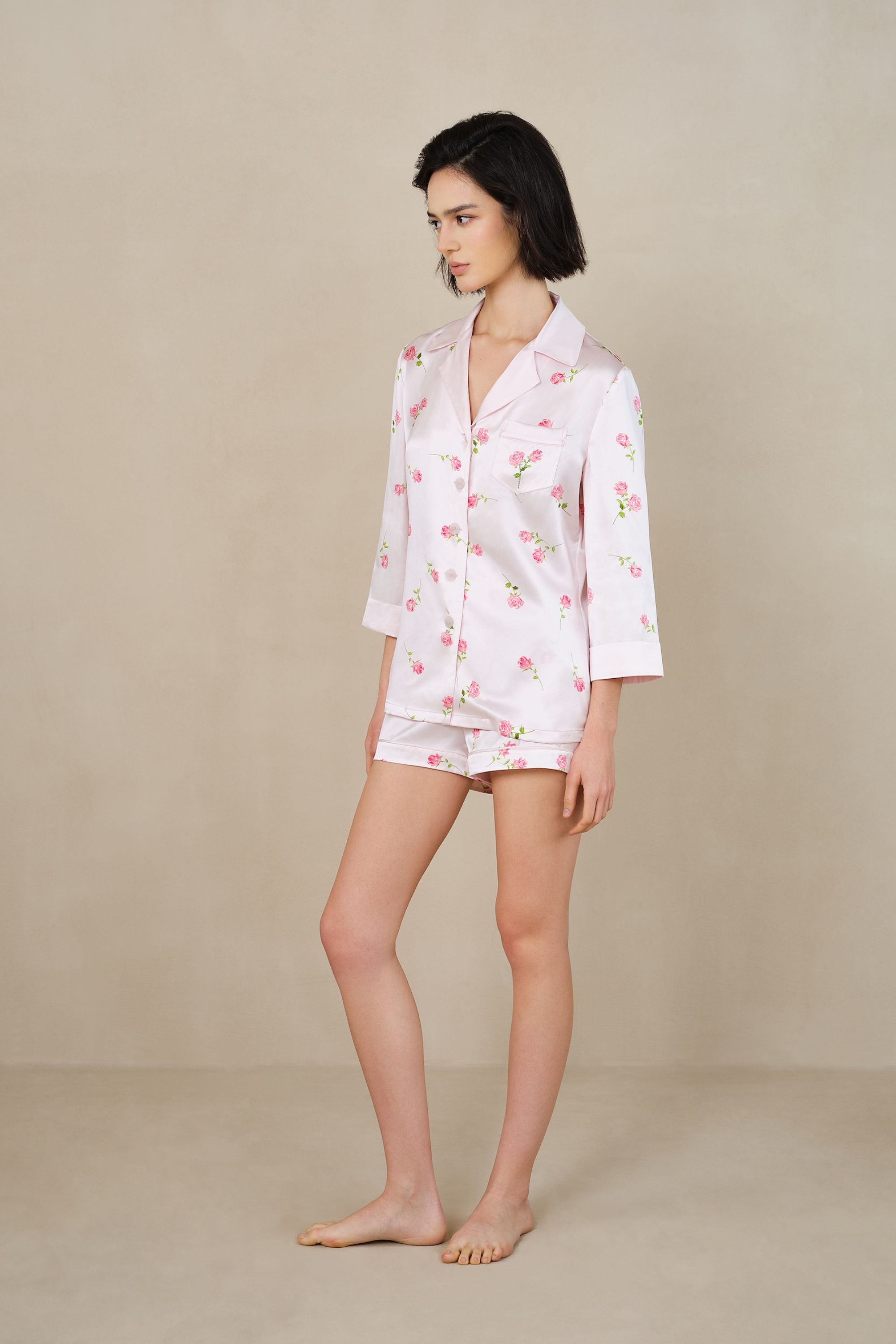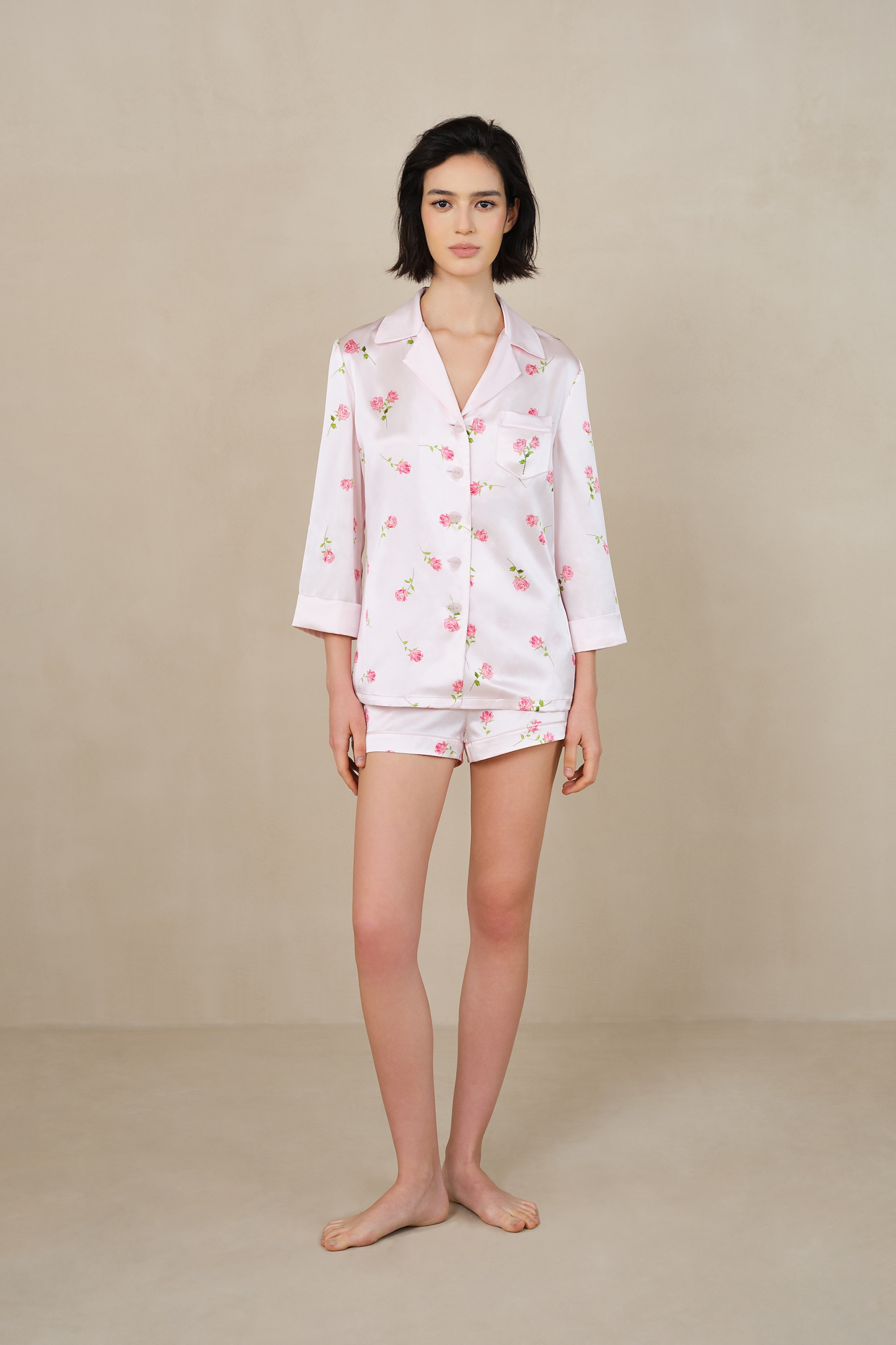 One of our classic silhouettes has been given a fresh twist with this pretty and feminine floral print, inspired by spring's rose gardens. This pyjama set features 3/4 length sleeve and shorts for a light summer look.