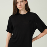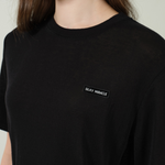 Drawing inspiration from minimalist design, this piece redefines homewear with a Clean Fit aesthetic. The loose T-shirt silhouette paired with a subtly sheer fabric creates an elevated, sophisticated look. Thoughtful details like the velvet-embossed logo on the chest and the rhinestone S emblem at the hem add a touch of elegance.