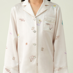 The beige denim base has a classic vintage look, with cactus, cowboy hats, western boots and road signs from adventures interspersed throughout the print, and the pockets are adorned with rhinestones.
