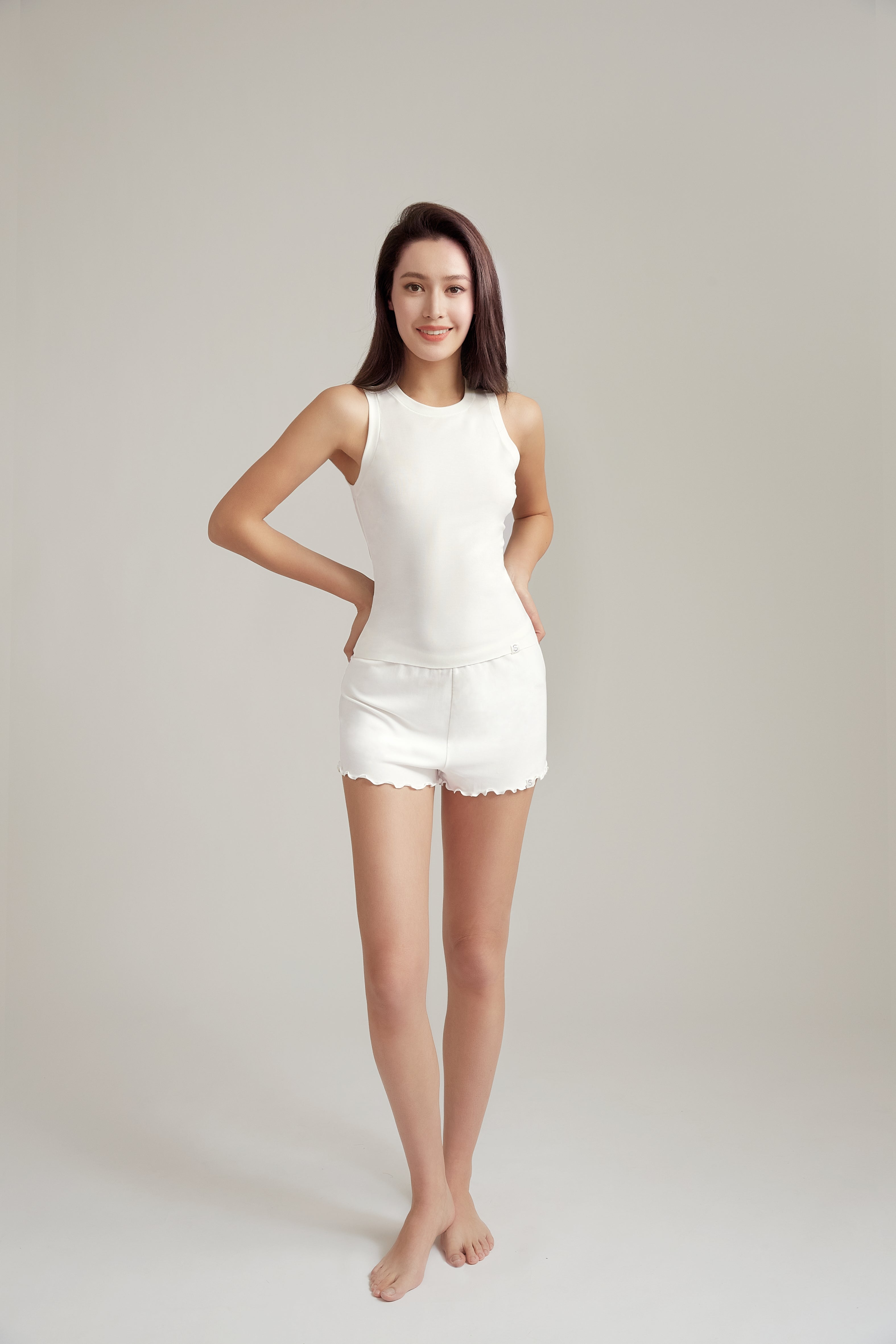 The Silk White Tank Top from our silk blend collection is crafted from a blend of mulberry silk, modal and spandex. Elevating the classic Tank Top by being finished with Swarovski crystals.