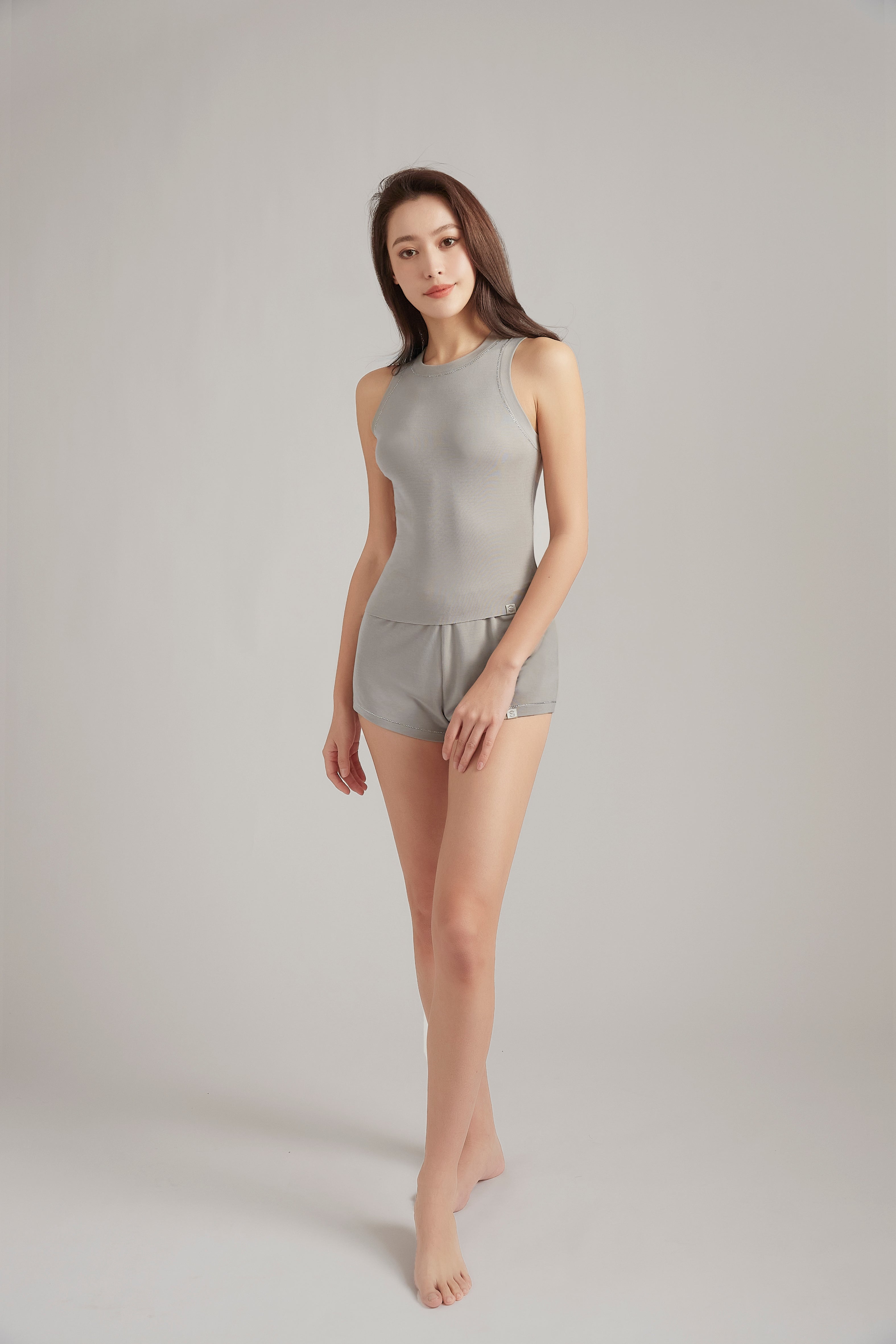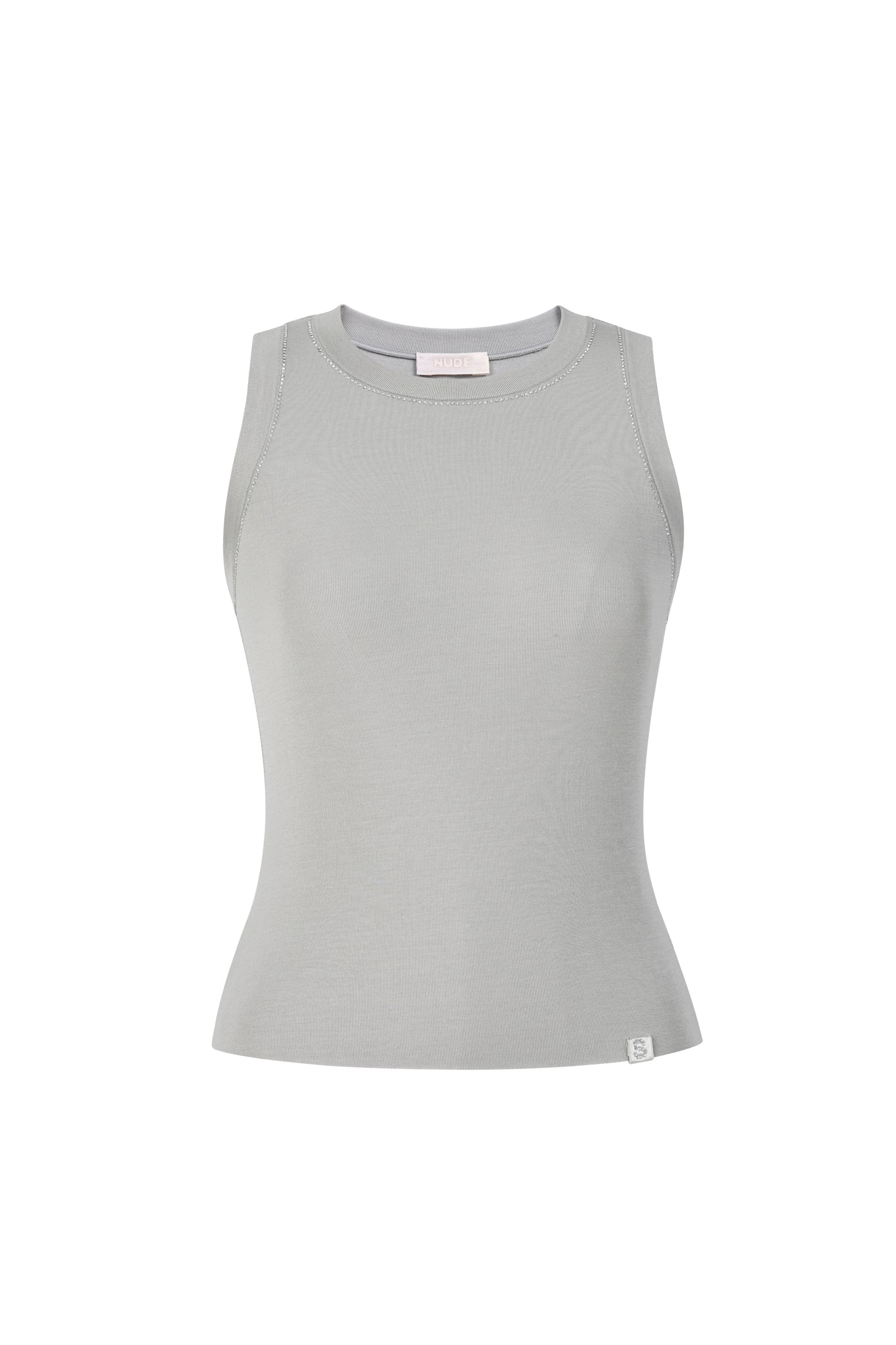 The Crystal Grey Tank Top from our silk blend collection is crafted from a blend of mulberry silk, modal and spandex. Elevating the classic Tank Top by being finished with Swarovski crystals.
