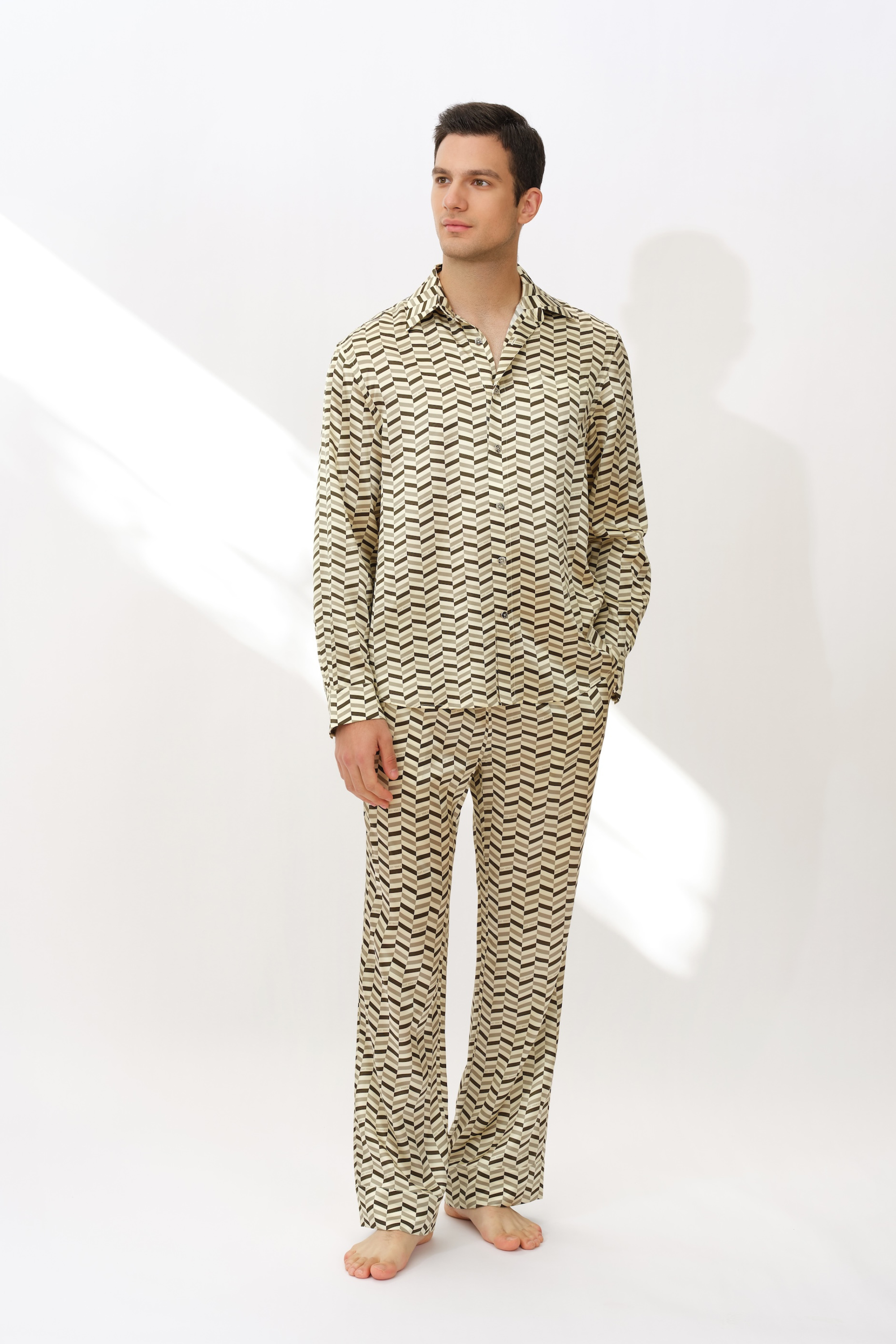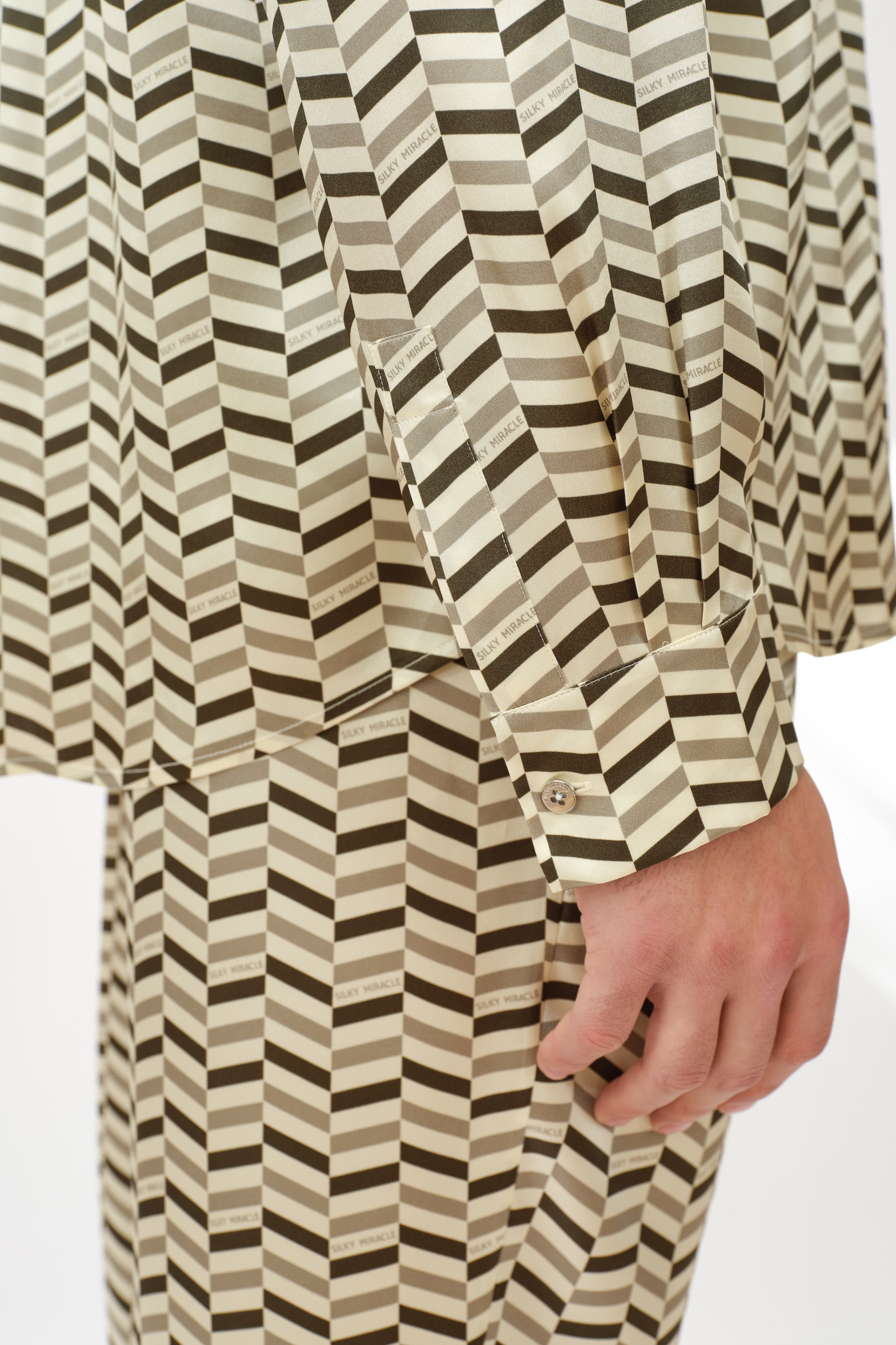 The  Men's Green Monogram Print Pyjama Trousers pattern combines the classic elements of stripes and checks with the new Silky Miracle logo monogram..