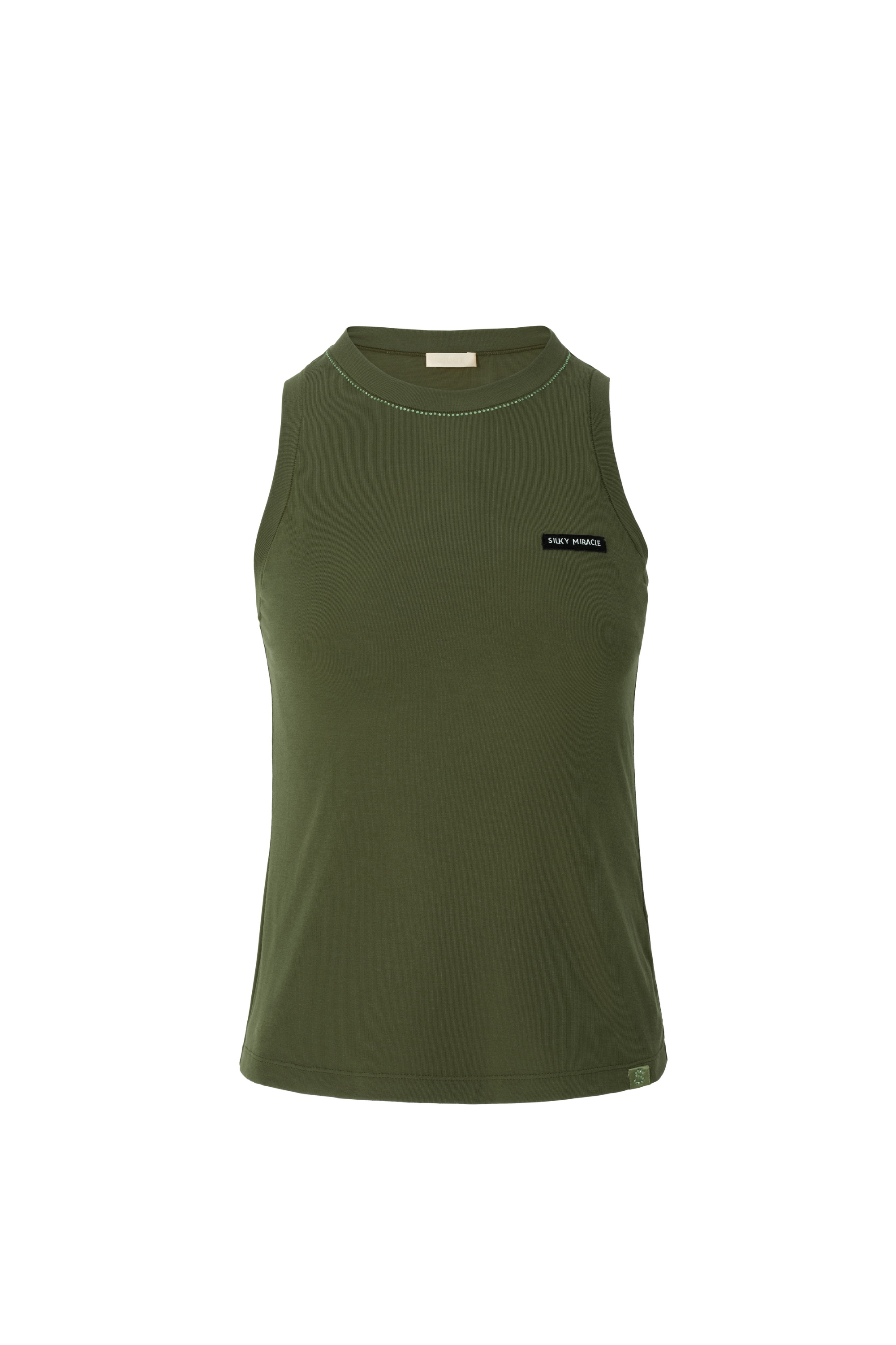 75.6% modal 12.2% mulberry silk 12.2% spandex and Swarovski Crystal.