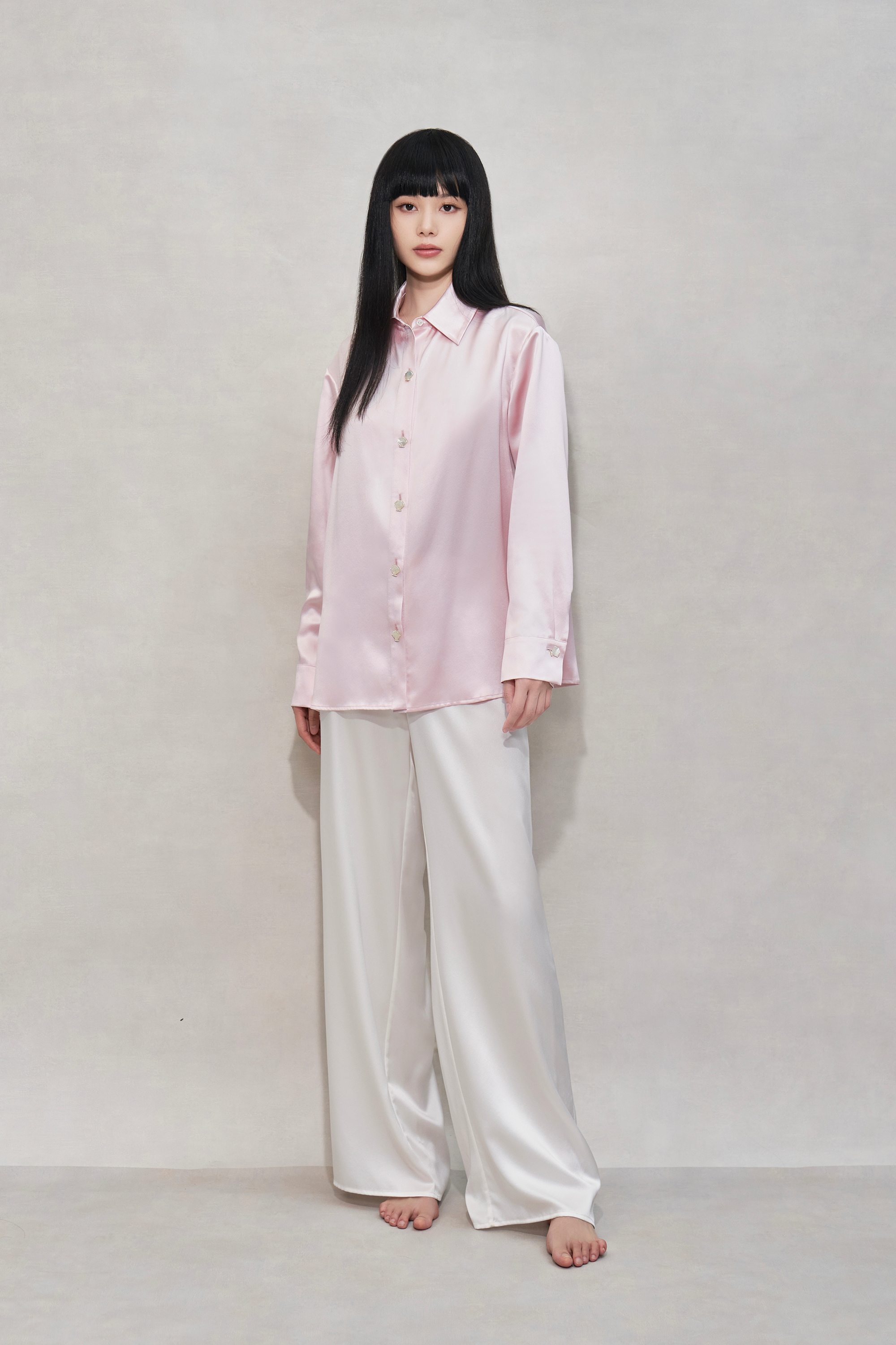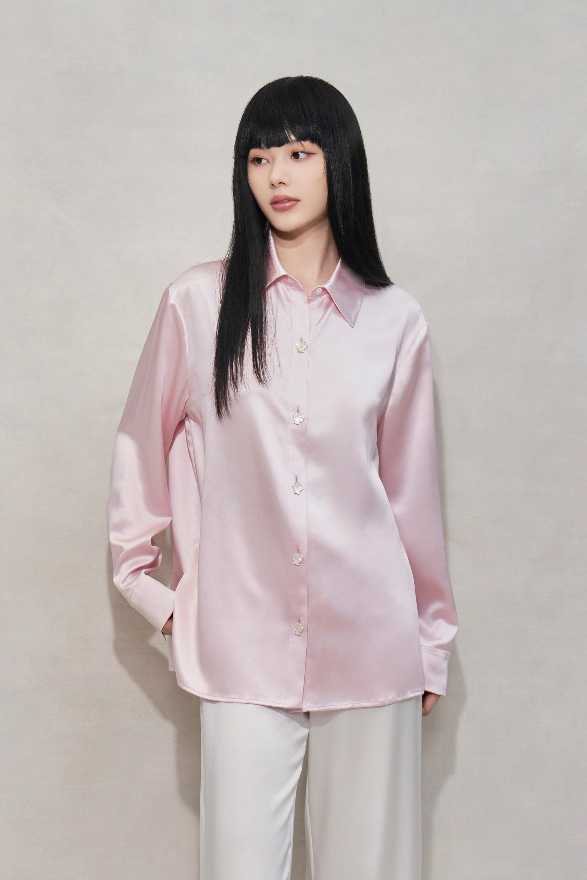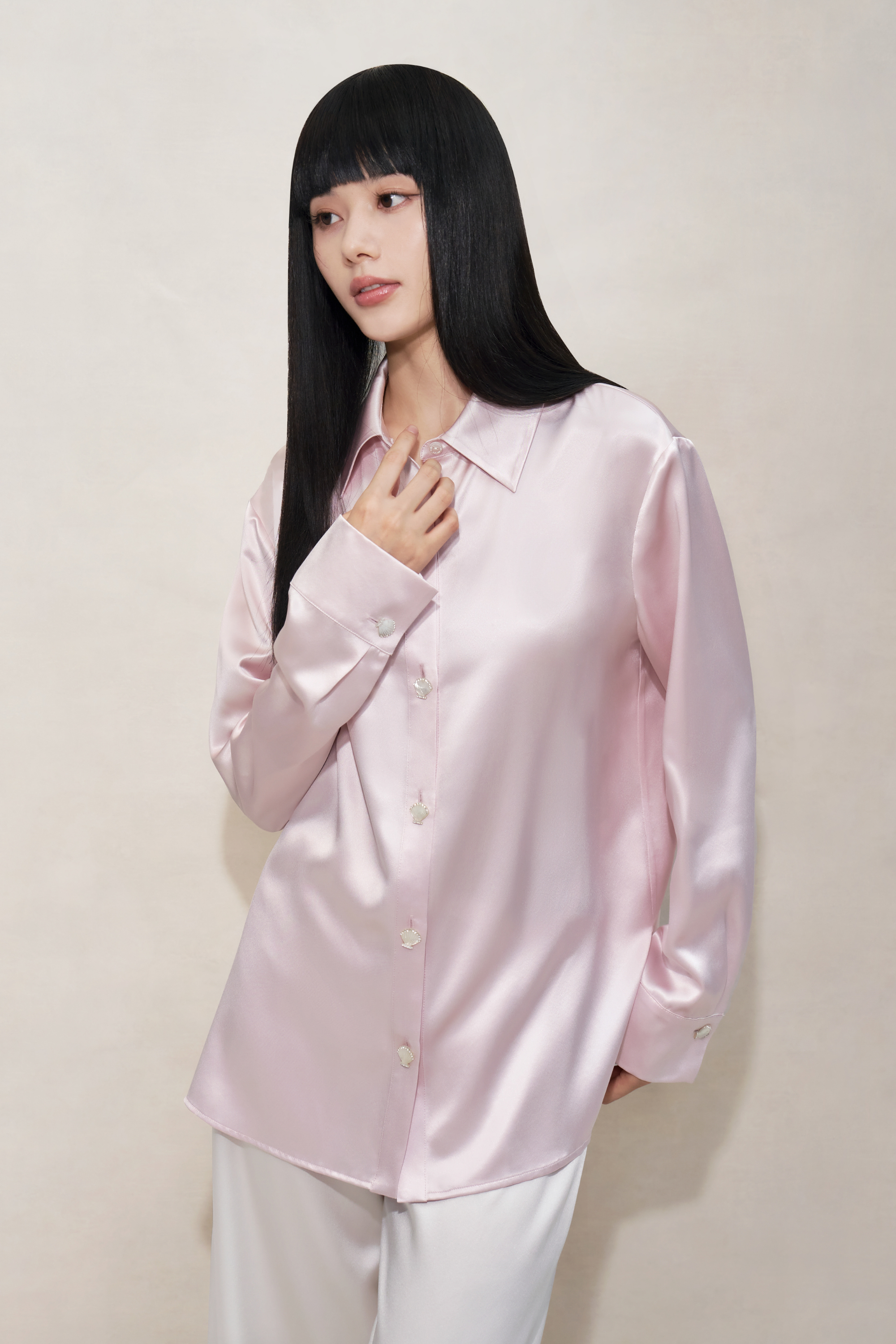 Sakura Pink Shell Button Silk Pyjama Shirt