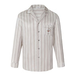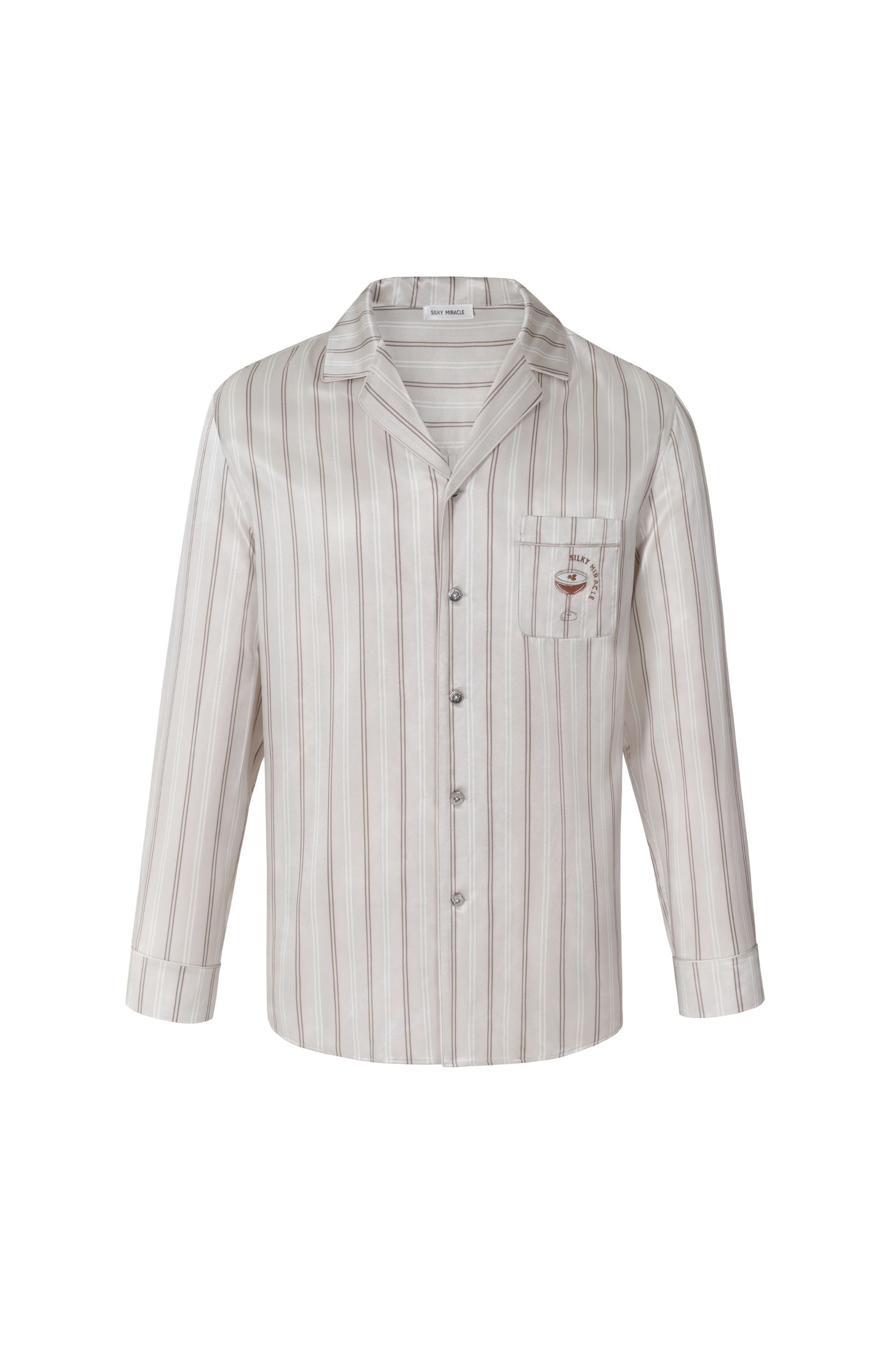 Classic men's suit with a comfortable, flattering fit. Earth-toned stripes and metallic buttons enhance its refined style, while chest embroidery of a coffee martini adds a sophisticated, lifestyle-inspired touch.