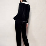 Crafted from Italian silk velvet, this fabric exudes softness & delicacy. Pearl white lapel design brings subtle, serene ambiance. Boasting 16mm silk lining w/ double layer for warmth & comfort, it ensures pampering. Silk straight-leg lounge trousers designed to flatter silhouette. Fabric A: 82% Viscose, 18% Mulberry Silk; Fabric B & C: 100% Mulberry Silk.