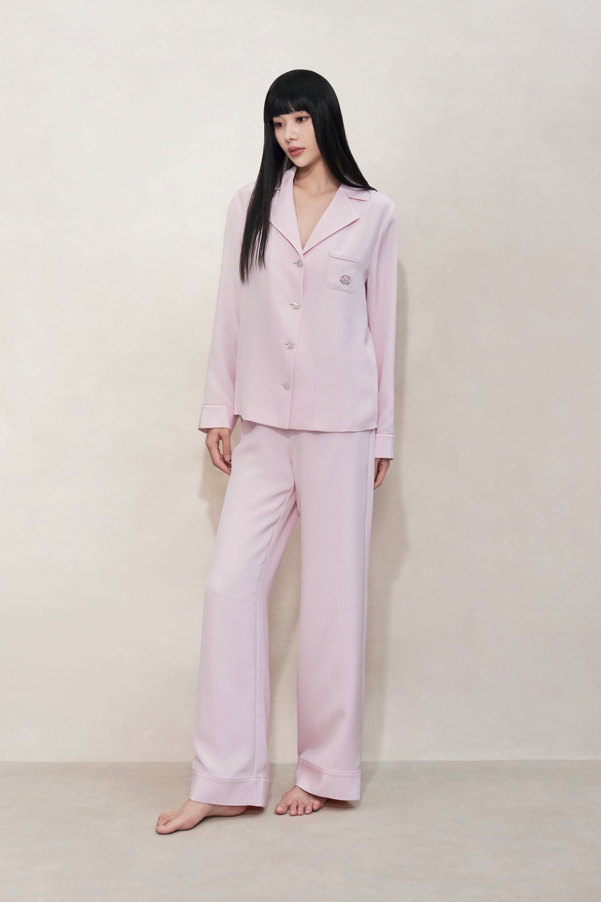Pastel Pink Silk Pyjama Set