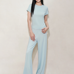 Experience softness and flexibility of our Mulberry silk modal knit fabric. The relaxed fit of the straight-leg trousers flatters the silhouette, while providing lasting comfort.