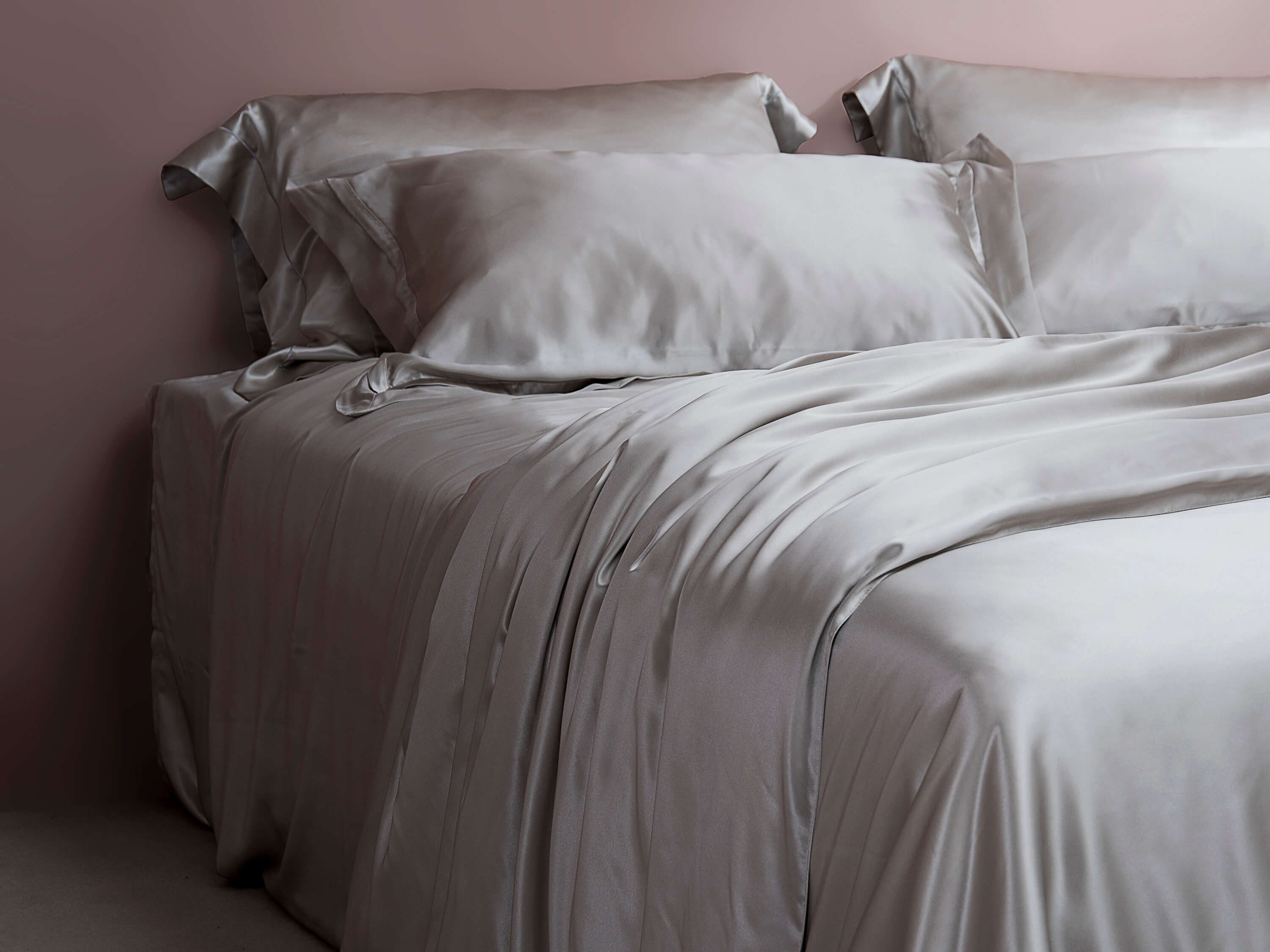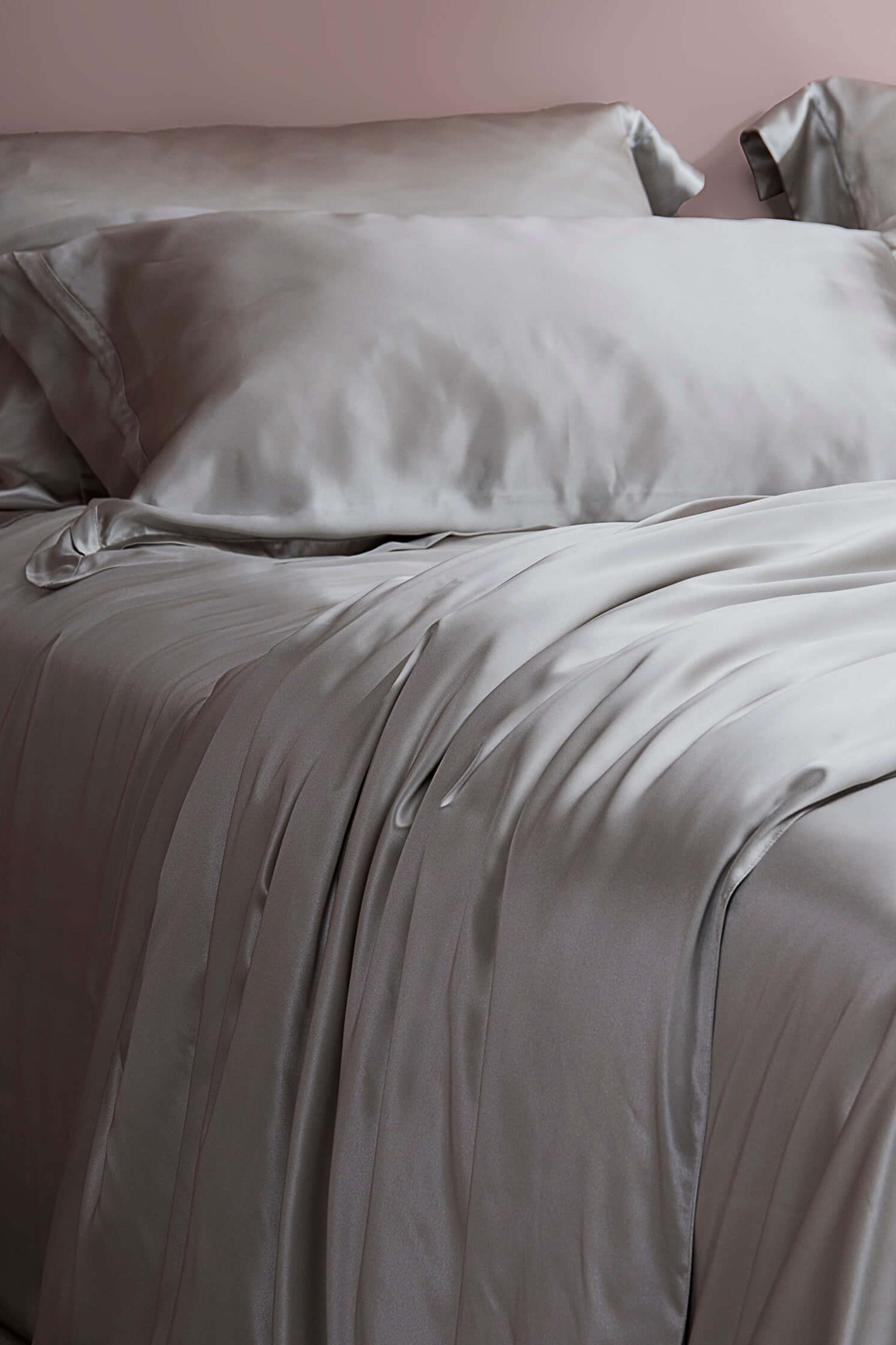 Sleep beautifully. A classic yet contemporary pillowcases crafted from a soft minimal grey 100% mulberry silk. This set contains two pillowcases.