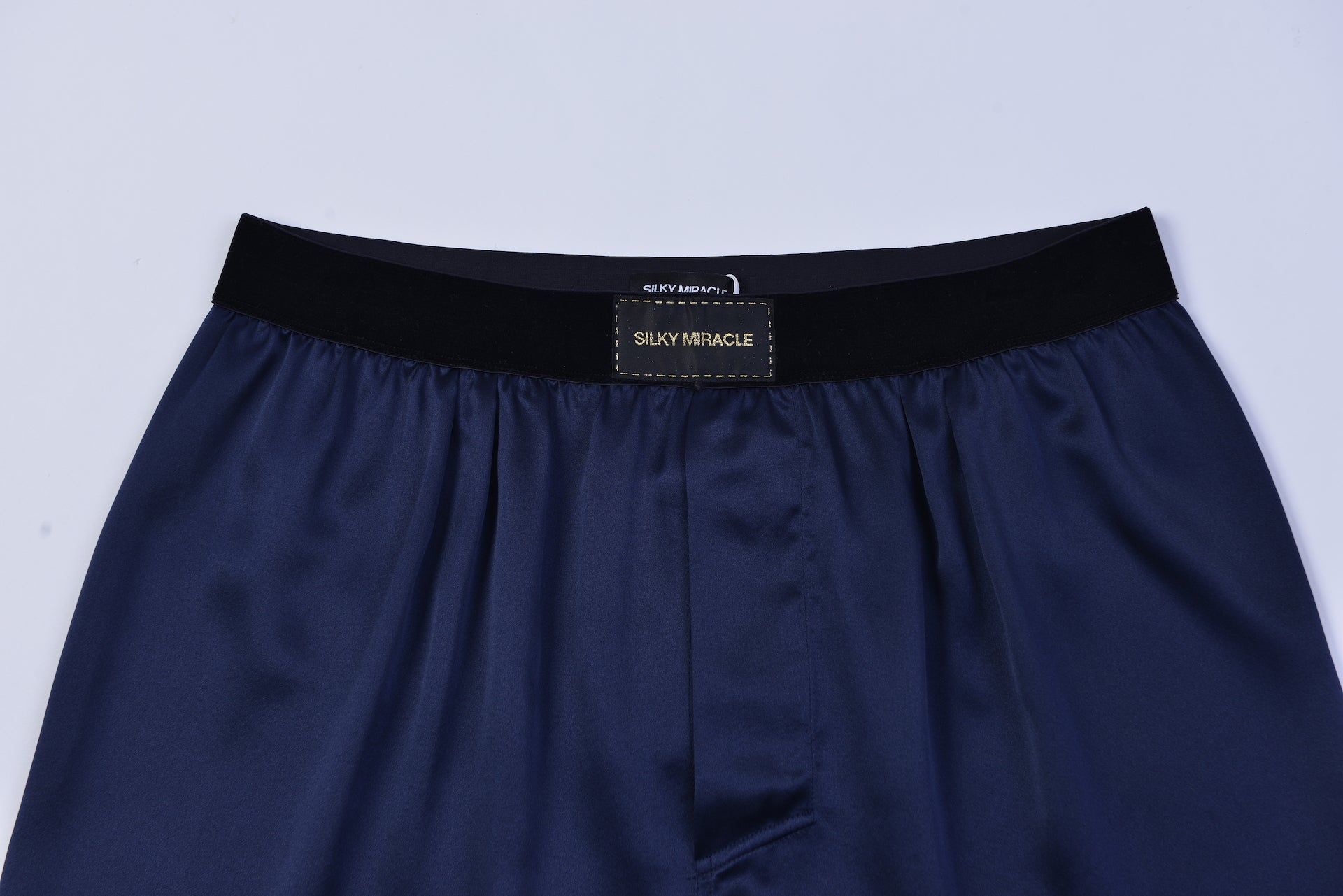 The Navy Silk Boxer Shorts are cut from a high shine Mulberry Silk and features a soft velvet waistband ensuring a luxuriously comfortable experience.