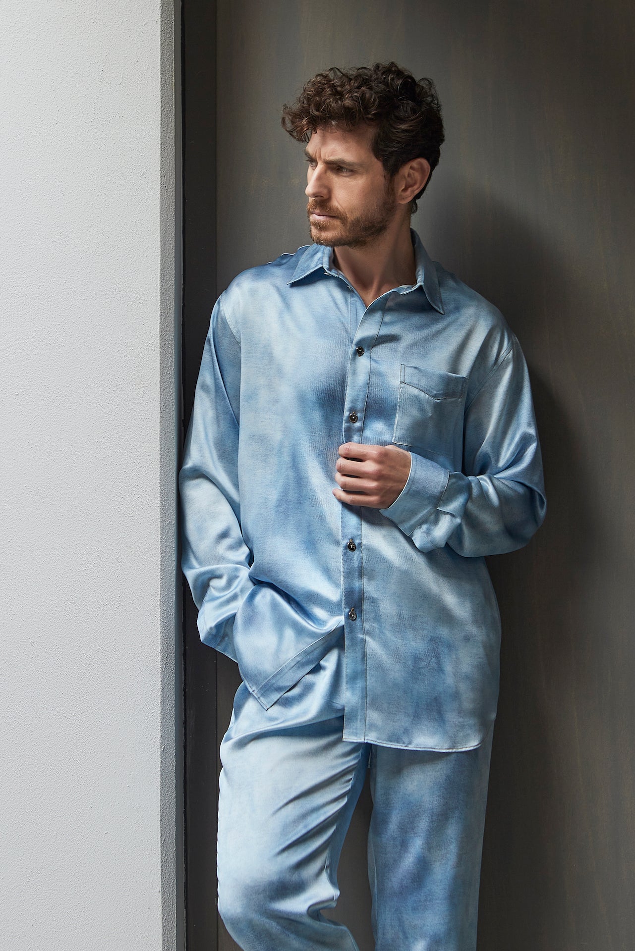 Men's Denim Blue Silk Pyjama Set