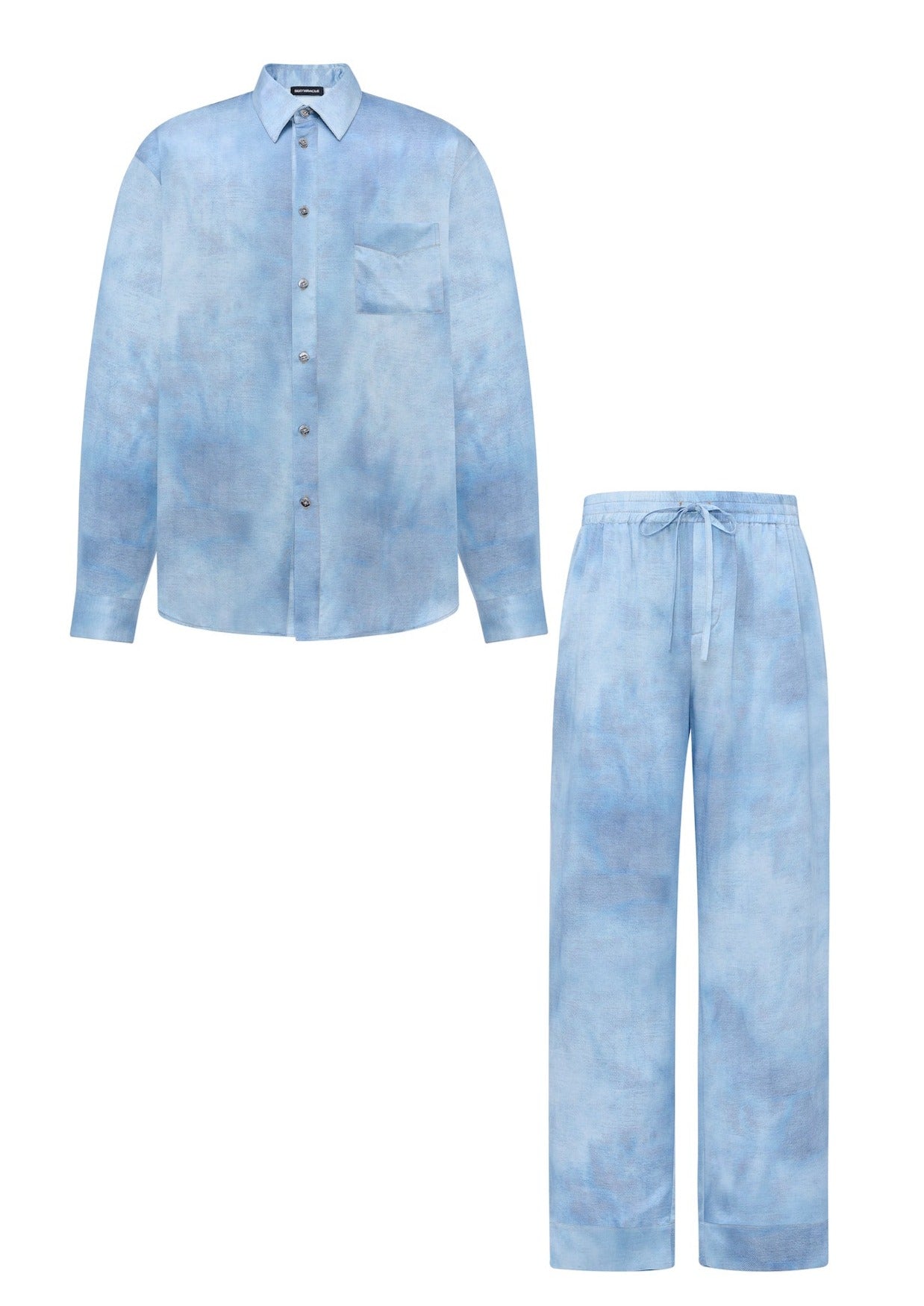 The Men's Denim Blue Silk Pyjama Set is cut from a beautifully glossy denim look Mulberry Silk and hand crafted for the classic double denim style. The shirt features a breast pocket and buttoned cuffs whilst the trousers have a drawstring waist.