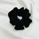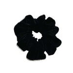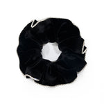 The Black Velvet Scrunchie is cut from a soft velvet and detailed with a Swarovski crystal trim.