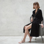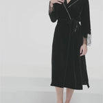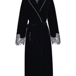 Attentively cut from a premium soft velvet, the Black Velvet Lace Robe is detailed with supple lace cuffs, emblazoned with Swarovski crystals and a brand studded tie waist.