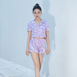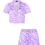 Zebra Print Crystal Purple Short-Sleeved Pyjama Set