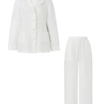 The White Crinkled Silk Pyjama Set comes with a long fitted shirt and trousers cut from a beautifully comfortable crinkled silk. The shirt is finished with large buttons and frayed edge details and the trousers feature pockets and an elastic waistband.