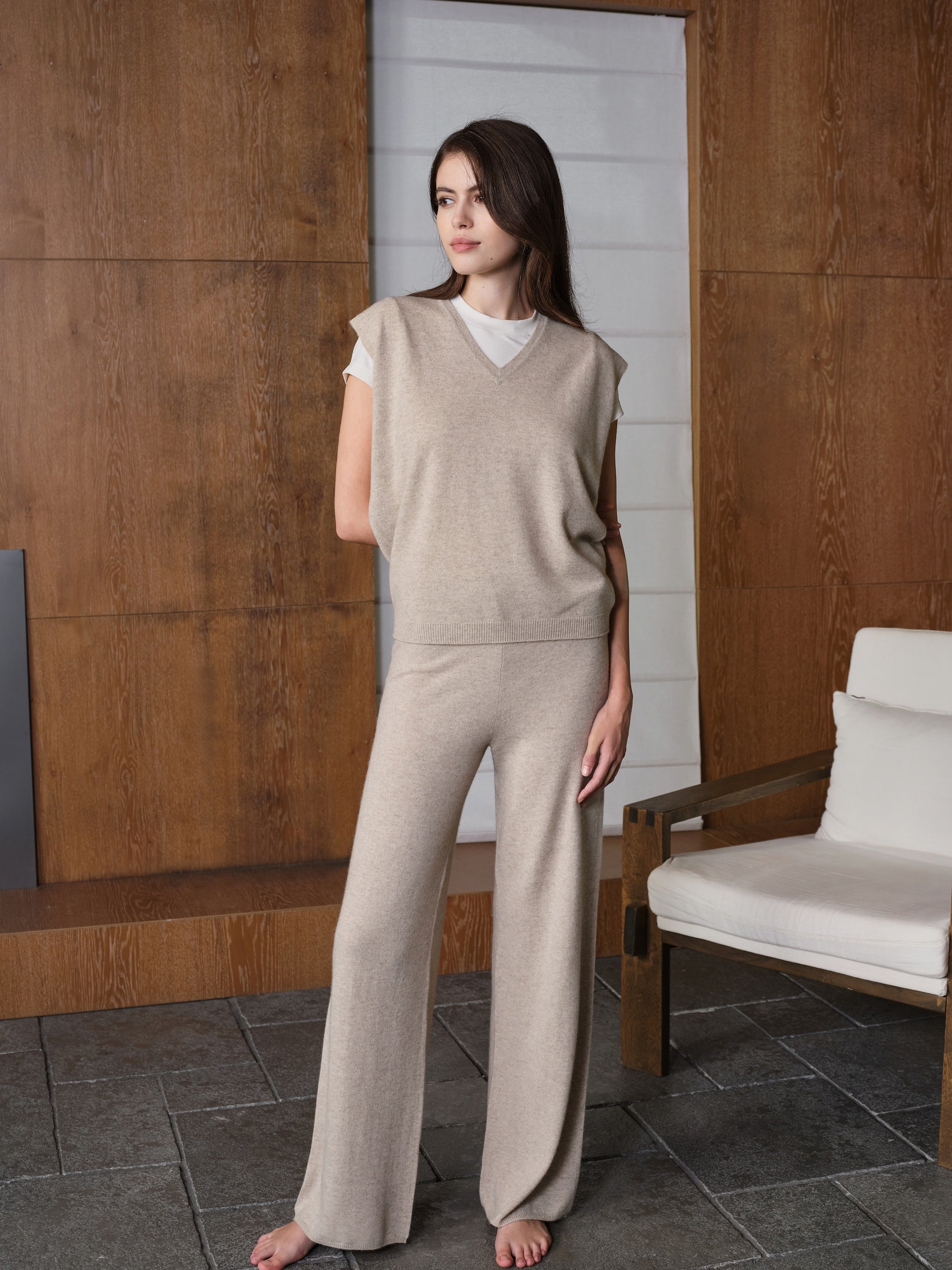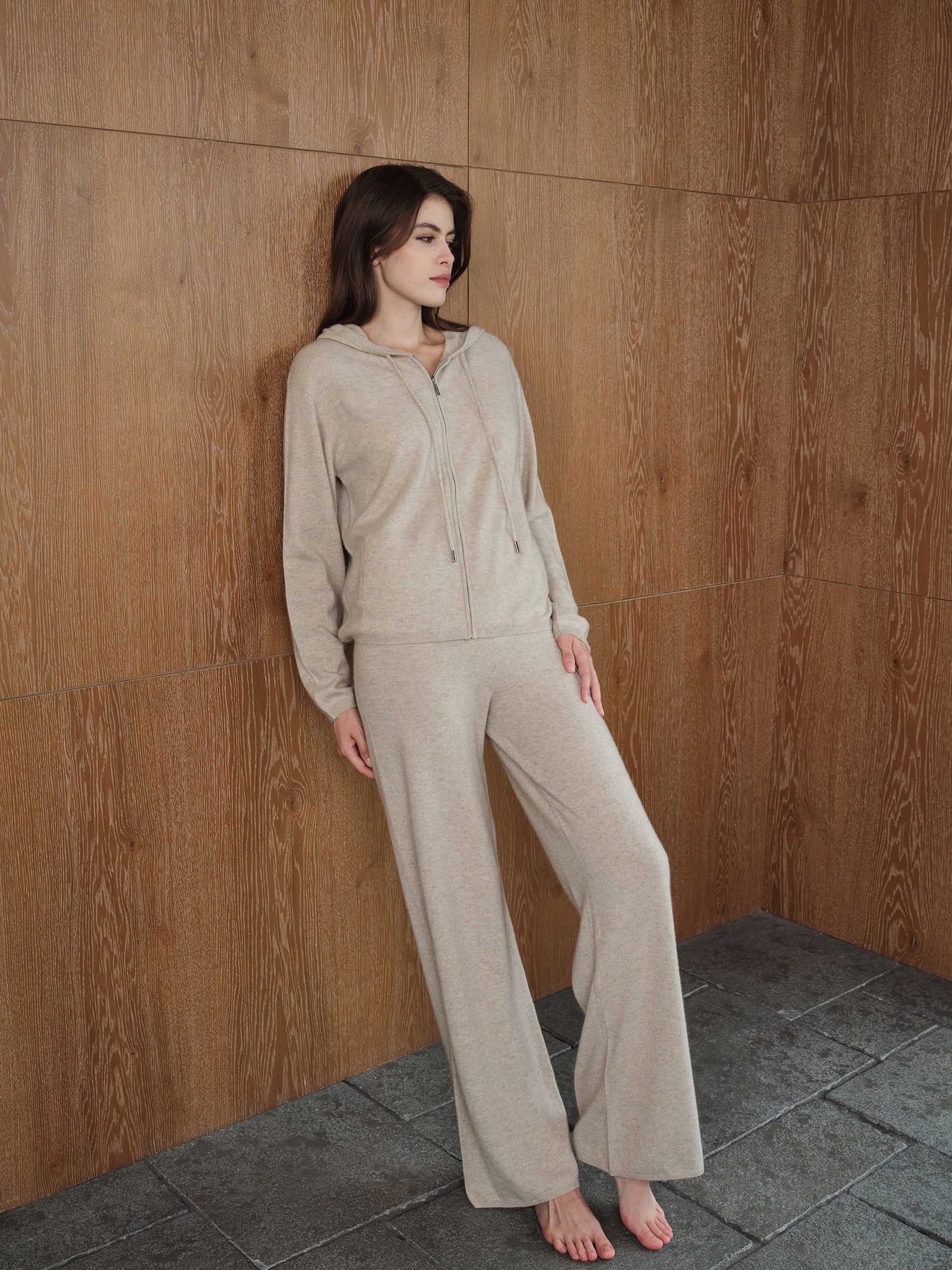 Basic knit wide-leg trousers, flattering to the leg line, comfortable and easy to wear, a versatile staple. Babycashmere texture feels even softer against the skin and more luxurious.