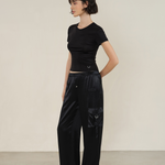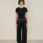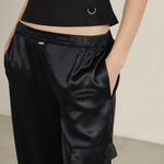 Introducing the "Nude" cargo trousers. Inspired by 'sport chic,' this collection embodies the softness, comfort, and elegance of knitted silk. Accentuated with Swarovski crystal buckles, it lets you discover the sporty energy of chic.