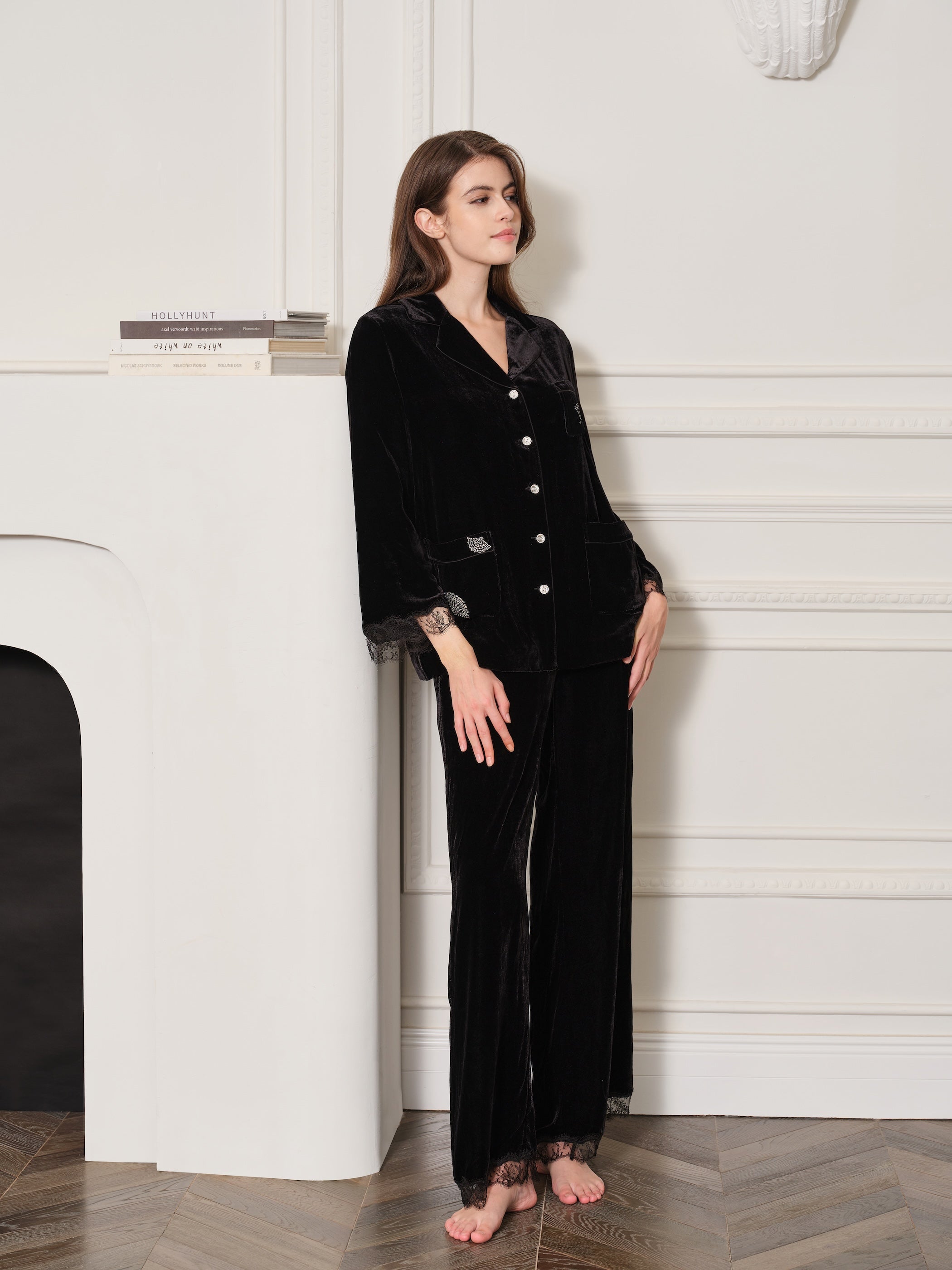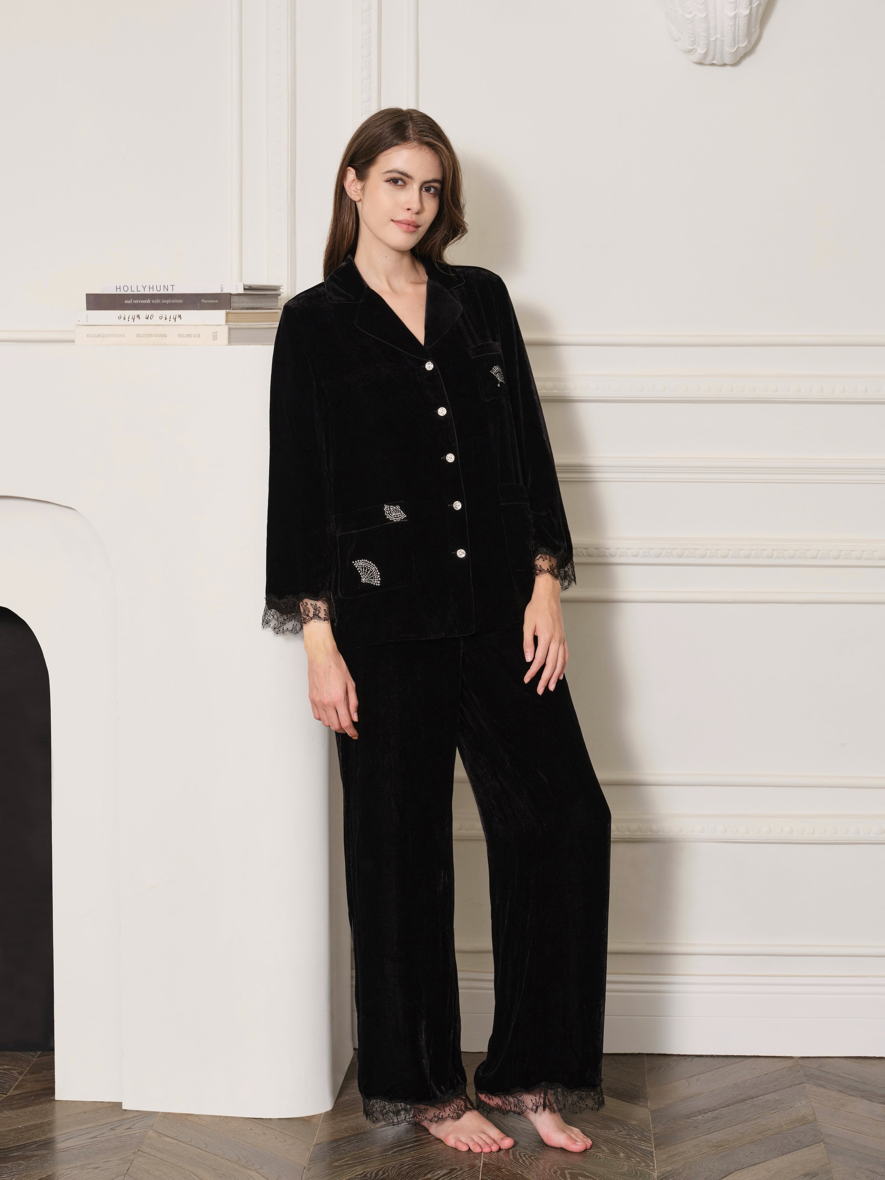 Oriental Collection Velvet Lace Long Pyjama Trousers