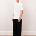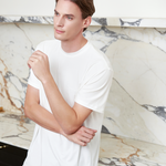Tailored from a blend of mulberry silk and modal silk knit fabrics, the Round Neck Basic Short Sleeve top is a custom-designed attire that offers a soft, comfortable, and stretchy feel. These T-shirts, available in both short-sleeved and long-sleeved styles, can be paired seamlessly with pants from the corresponding collection.