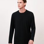 Tailored from a blend of mulberry silk and modal silk knit fabrics, the Round Neck Basic Short Sleeve top is a custom-designed attire that offers a soft, comfortable, and stretchy feel. These T-shirts, available in both short-sleeved and long-sleeved styles, can be paired seamlessly with pants from the corresponding collection.