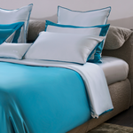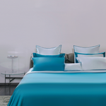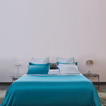 Sky Blue and Jewel Green Silk Bed Set
