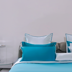 Elevate your nights sleep with the 100% silk bicolour bedding set. A classic, yet modern design featuring two pillow cases, a duvet cover and an under sheet.