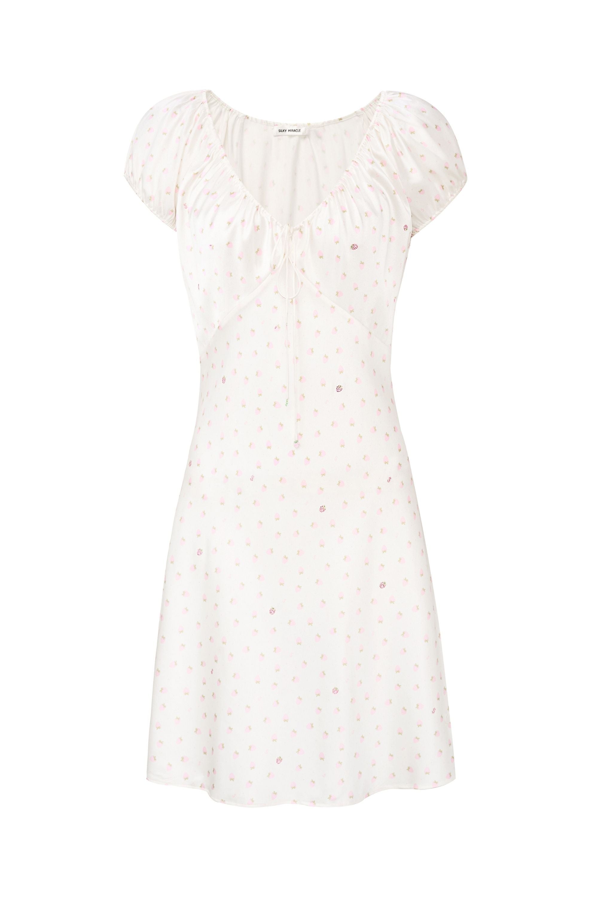 Strawberry Series Silk Puff-Sleeve Mini Dress